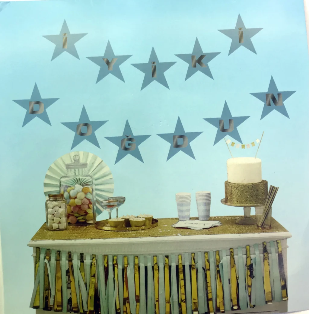 Mavi Üzeri Gümüş Yıldız İyiki Doğdun Flama Süs