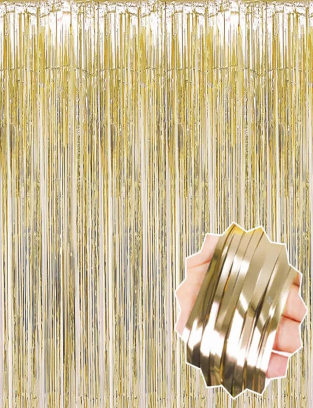 Altın renkli metalik tinsel perde ile mekanınızı parlatın ve unutulmaz anılar biriktirin!