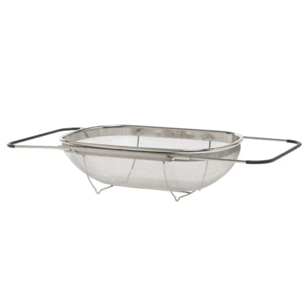 PASLANMAZ ÇELİK TELESKOPİK SÜZGEÇÜrün ÖzellikleriPaslanmaz çelik teleskopik süzgeç, meyve, sebze, makarna gibi yiyecekleri yıkamak veya süzmek için kullanılır. Dayanıklı paslanmaz çelik yapısı uzun ömürlüdür ve etkili süzme sağlar. İnce delikli tel örgü yapısı sayesinde küçük parçaların kaçmasını önler. Teleskopik açılıp kapanabilir yan kolları, süzgecin lavabo üzerine kolayca yerleştirilmesini sağlar ve farklı lavabo genişliklerine uyum gösterir. Süzgeç, katlanabilir ayakları sayesinde yerden yükseltilerek daha hijyenik kullanım sunar. Hem ev tipi mutfaklar hem de profesyonel mutfaklar için uygundur.Paket İçeriği1 Adet Paslanmaz Çelik Teleskopik Süzgeç