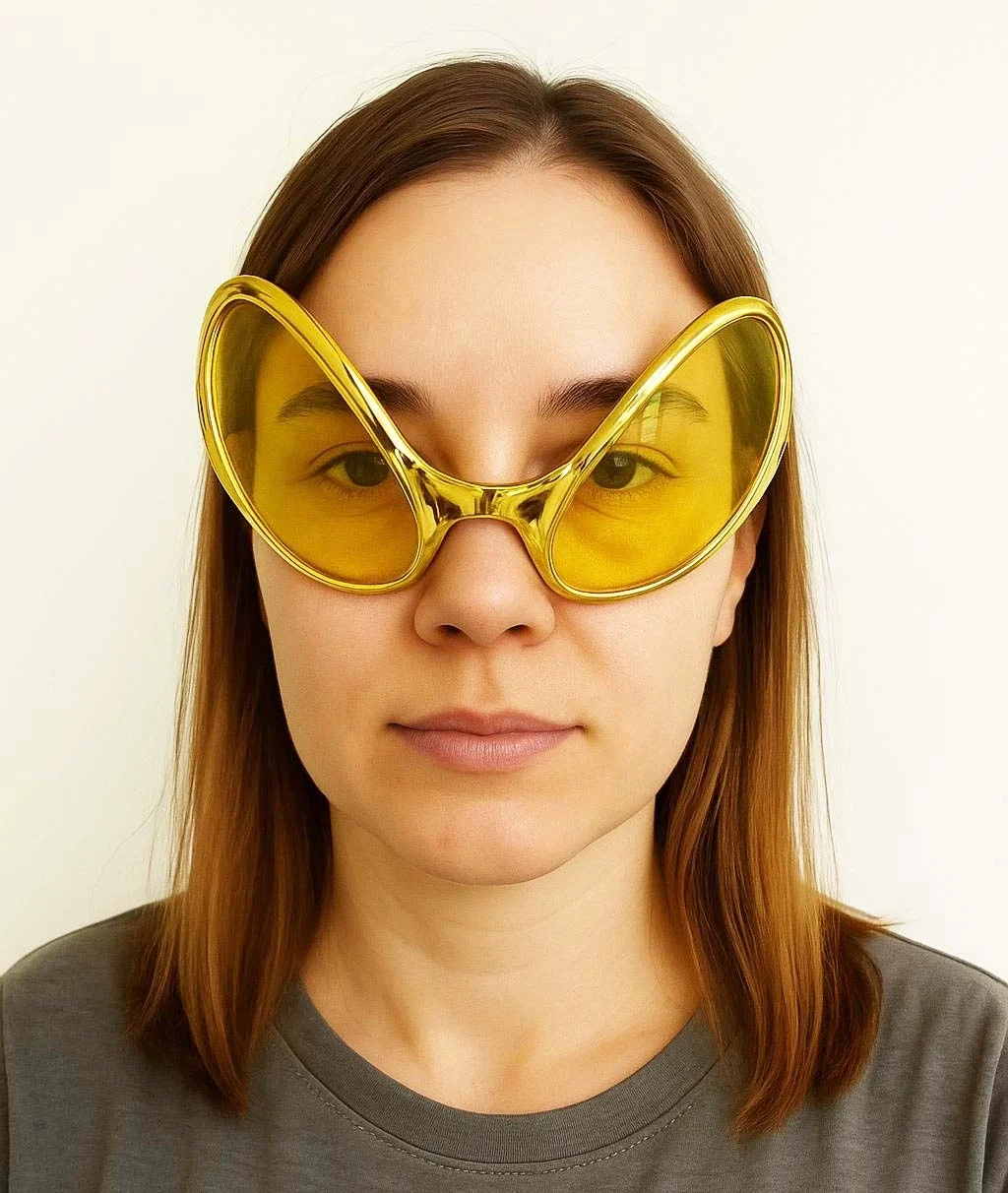 Retro Gözlük - 80 Li 90 Lı Yıllar Parti Gözlüğü Gold Renk 8x13 Cm