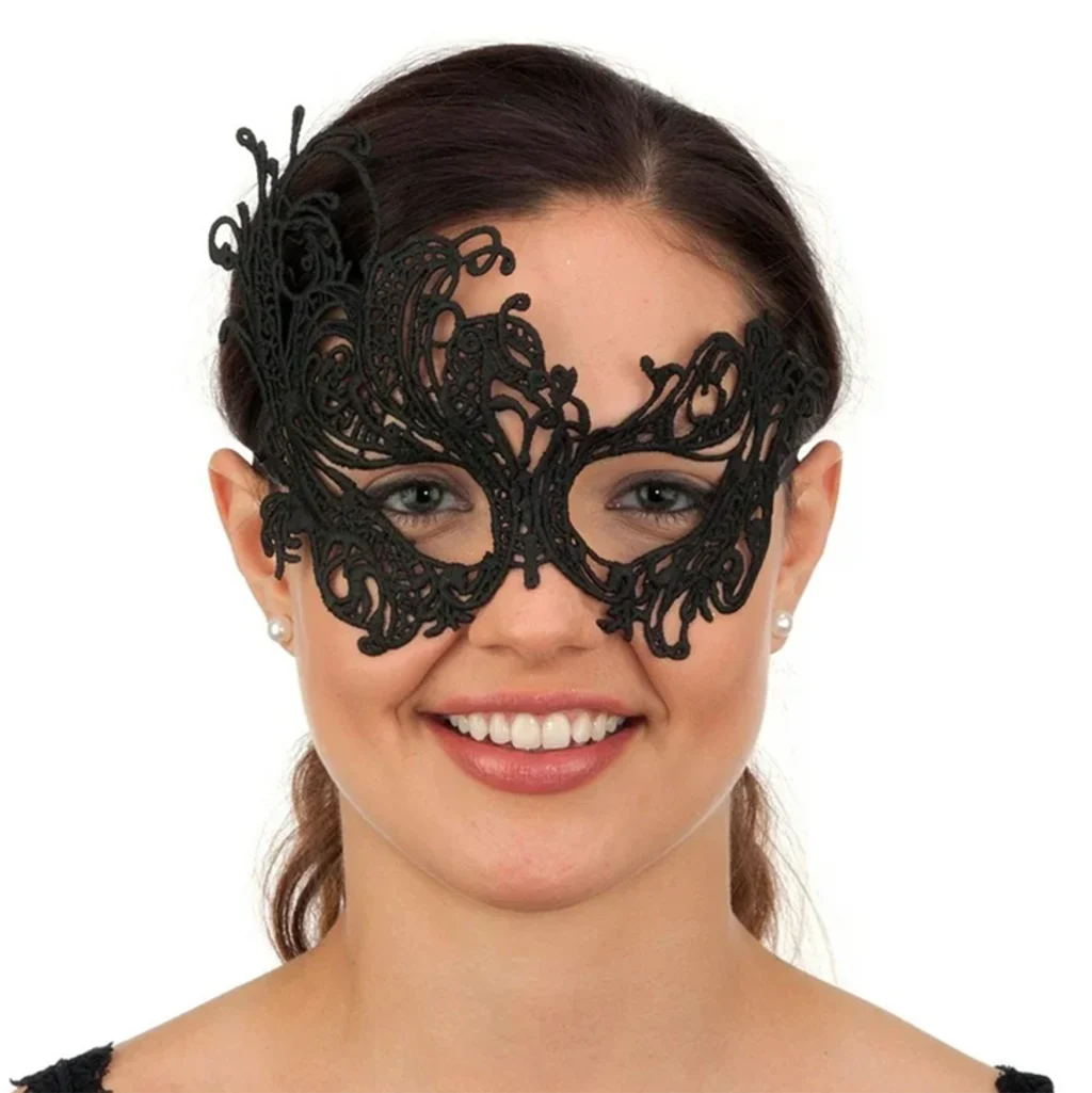 Siyah Dantel İşlemeli Parti Maskesi