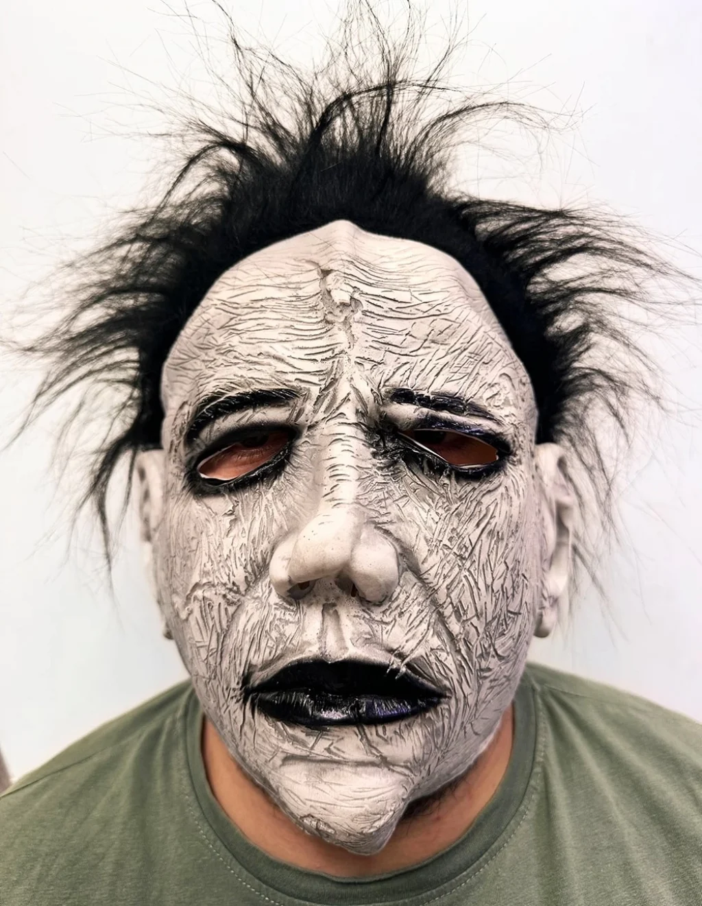 Siyah Saçlı Michael Myers Lateks Yüze Tam Yapışan Et Maske Korku Maskesi