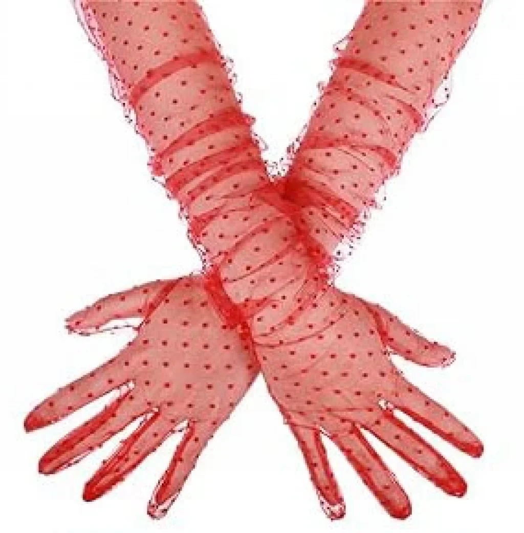Uzun Boy Kırmızı Puantiyeli Kırmızı Renk Yetişkin Tül Eldiven