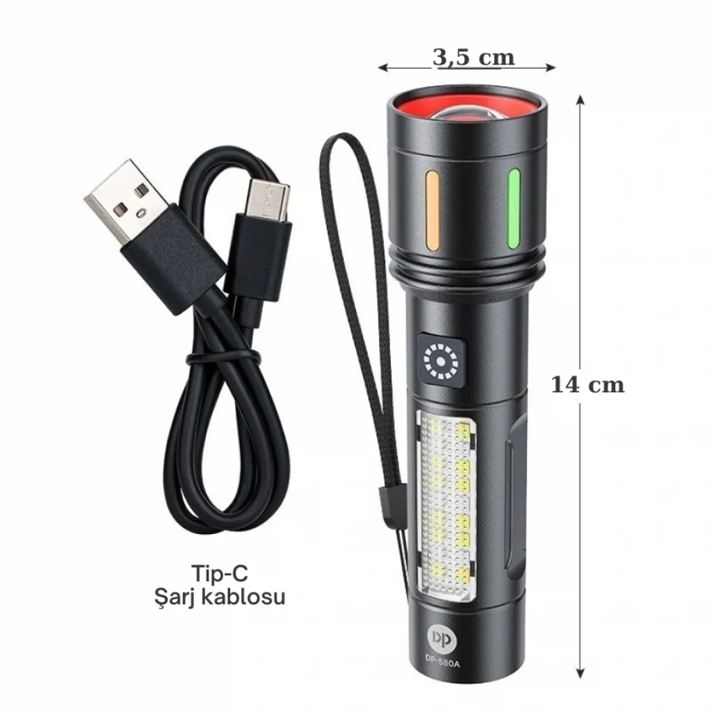 Gold Police Gp-212 Şarjlı Metal El Feneri | 1000 Lümen Polis Feneri Çakarlı