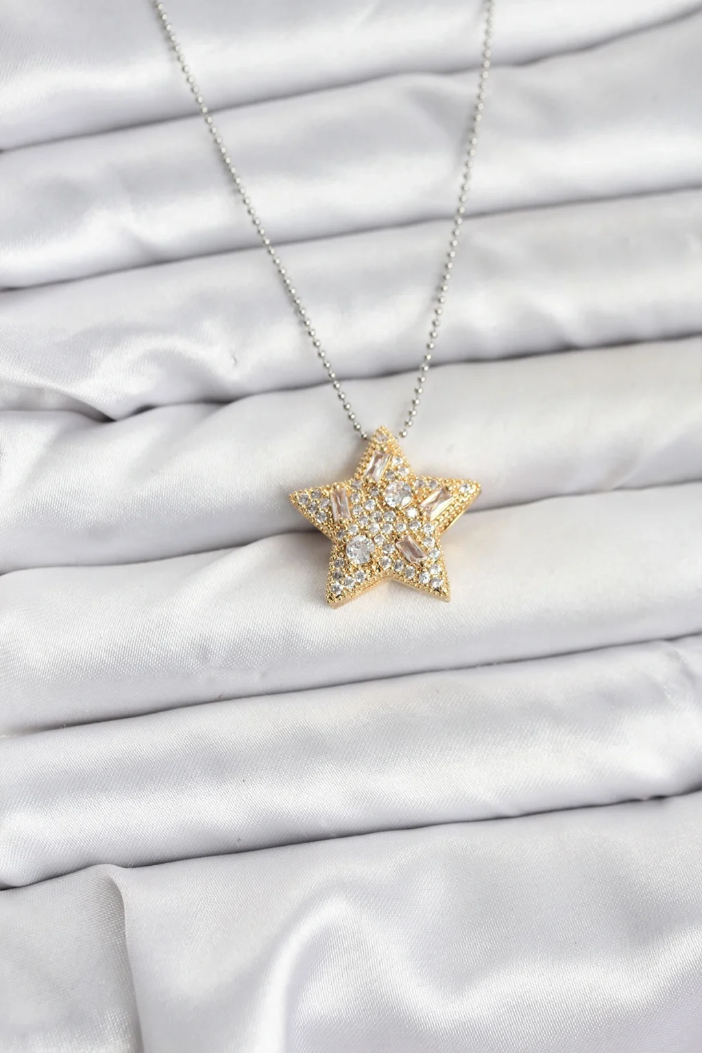 Gold Renk Pirinç Yıldız Zirkon Taşlı Kadın Kolye
