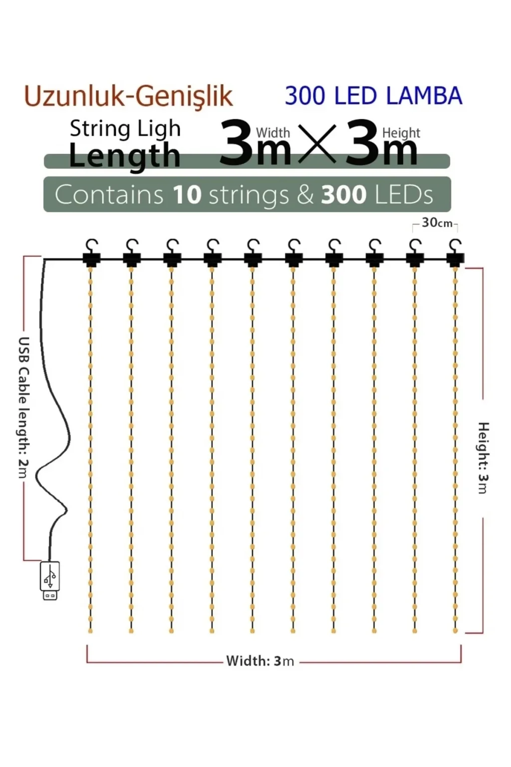 8 Fonksiyonlu Peri Perde Led Uzaktan Kumandalı Günışığı Perde Peri Led (3 Mt X 3 Mt)