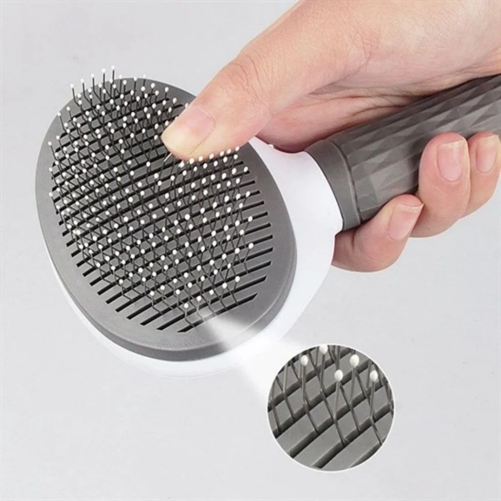 • Kedi Köpek Tüy Toplayıcı Kendini Temizleyebilen Ergonomik Rahat Evcil Hayvan Tarağı Gri