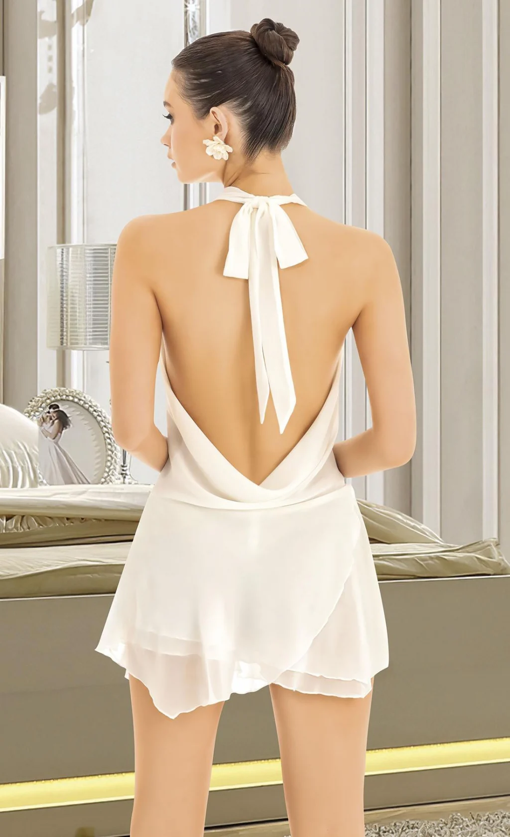 Luz&Pos Arias Closet Beyaz Sırt Ve Göğüs Dekolteli Fantezi Mini Elbise