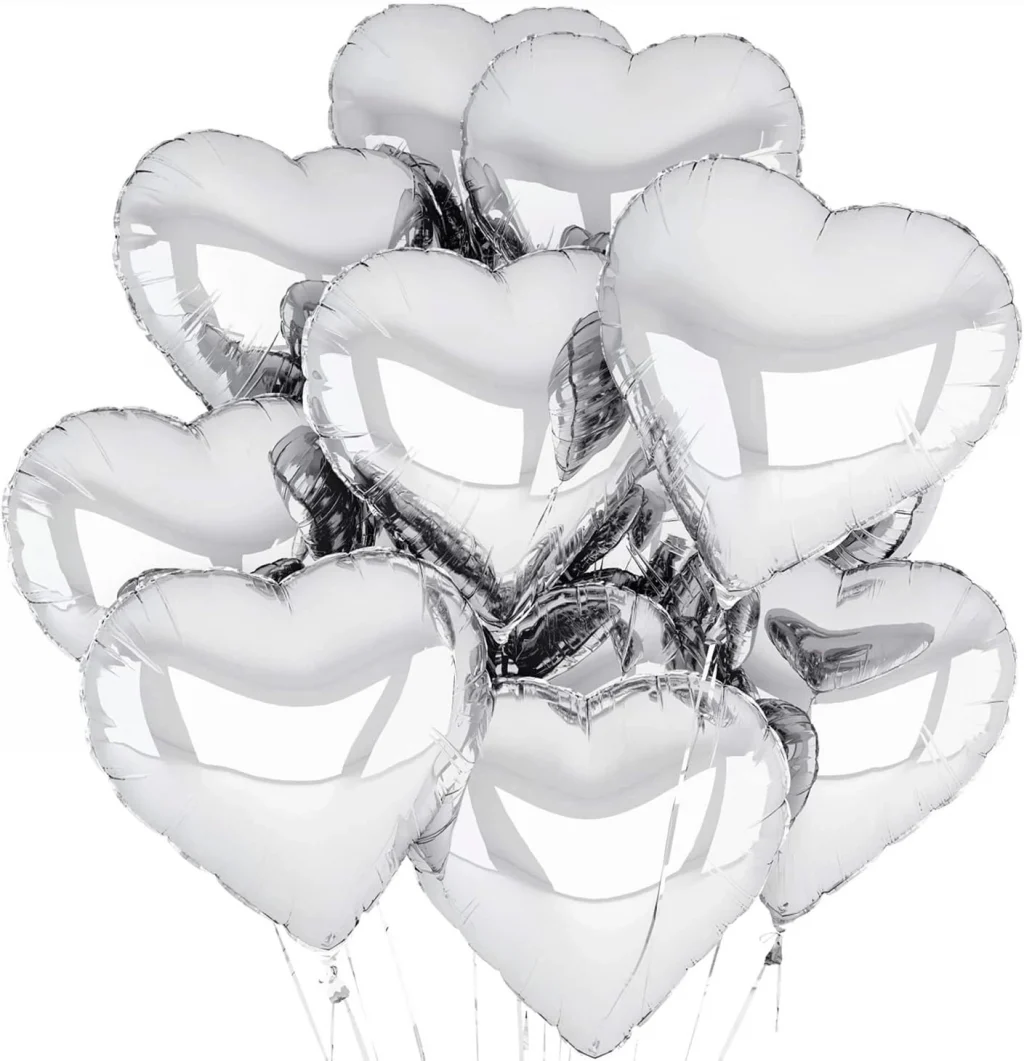 Metalize Parlak Gümüş Kalp Şekilli Uçan Balon Folyo 18 İnç 45 Cm 10 Adet