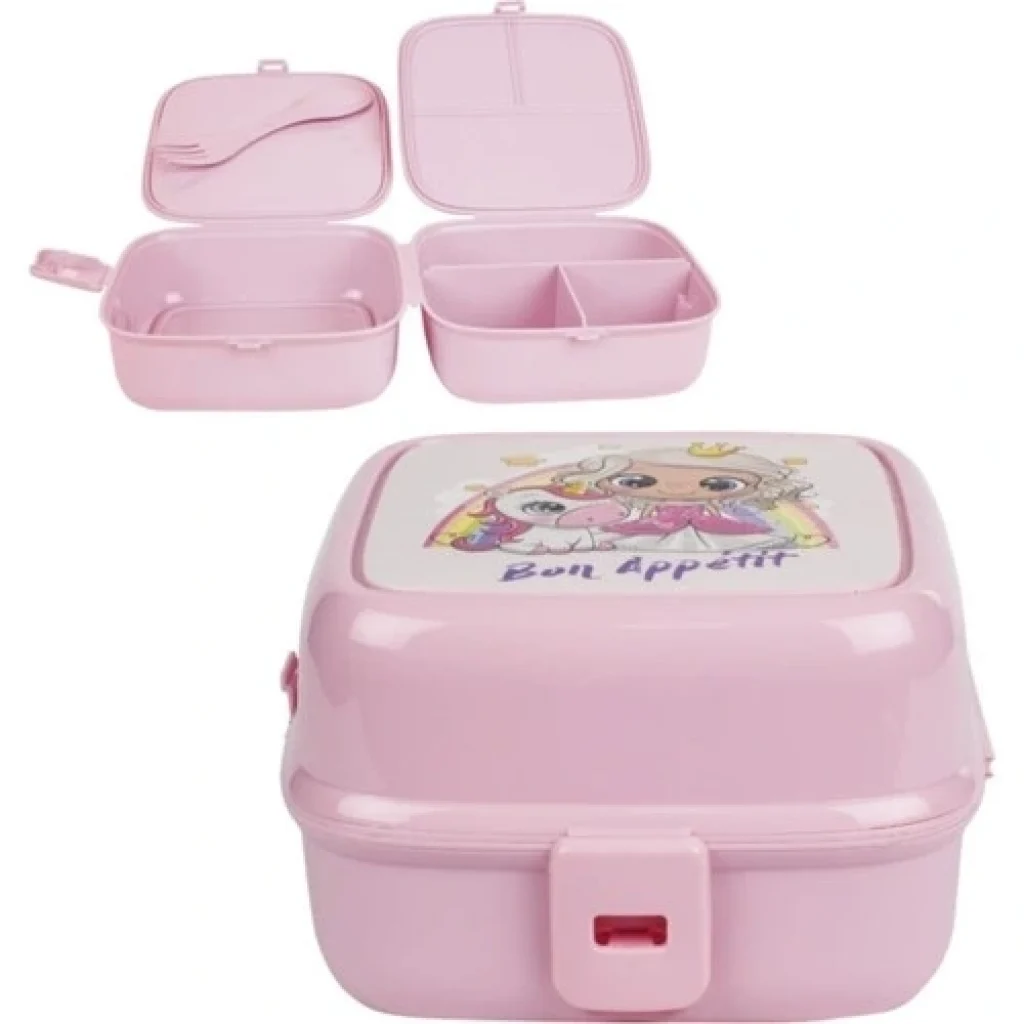 Porky Lol Desenli 4 Bölmeli Çatallı Beslenme Kabı - Diyet Kabı