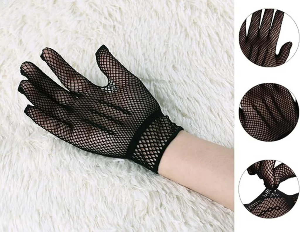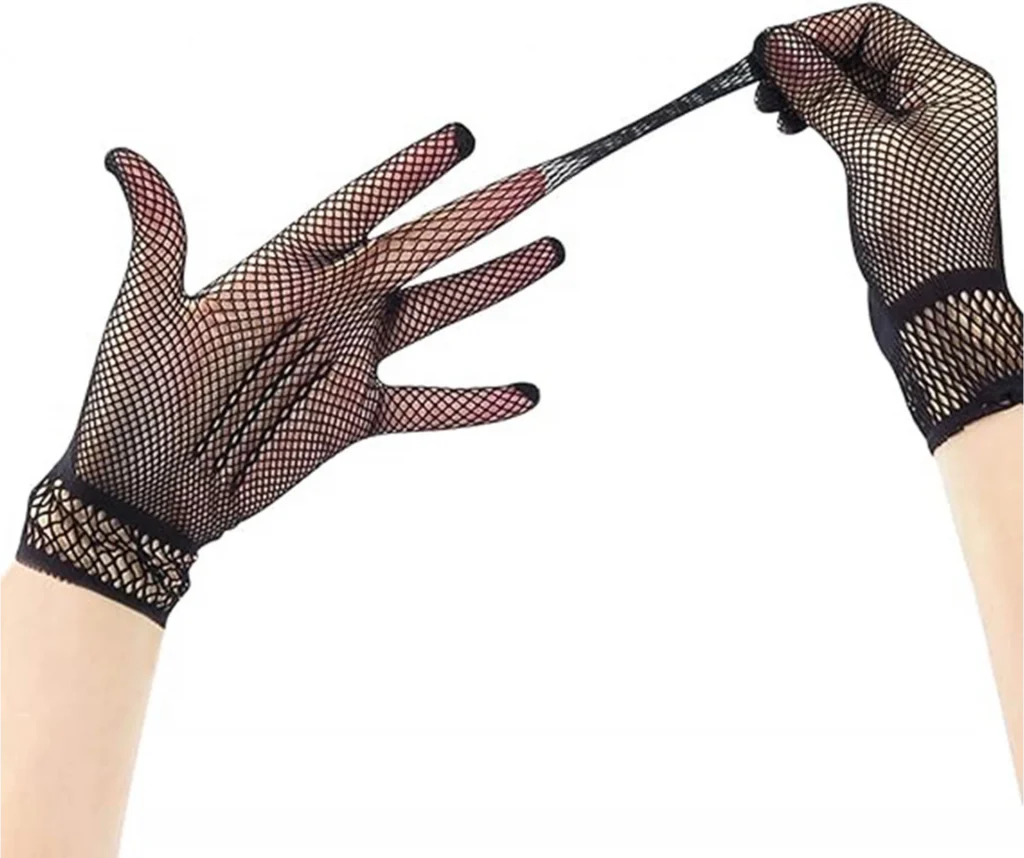 Siyah Renk Likralı File Eldiven Parmaklı Örgü Eldiven Yetişkin Boy