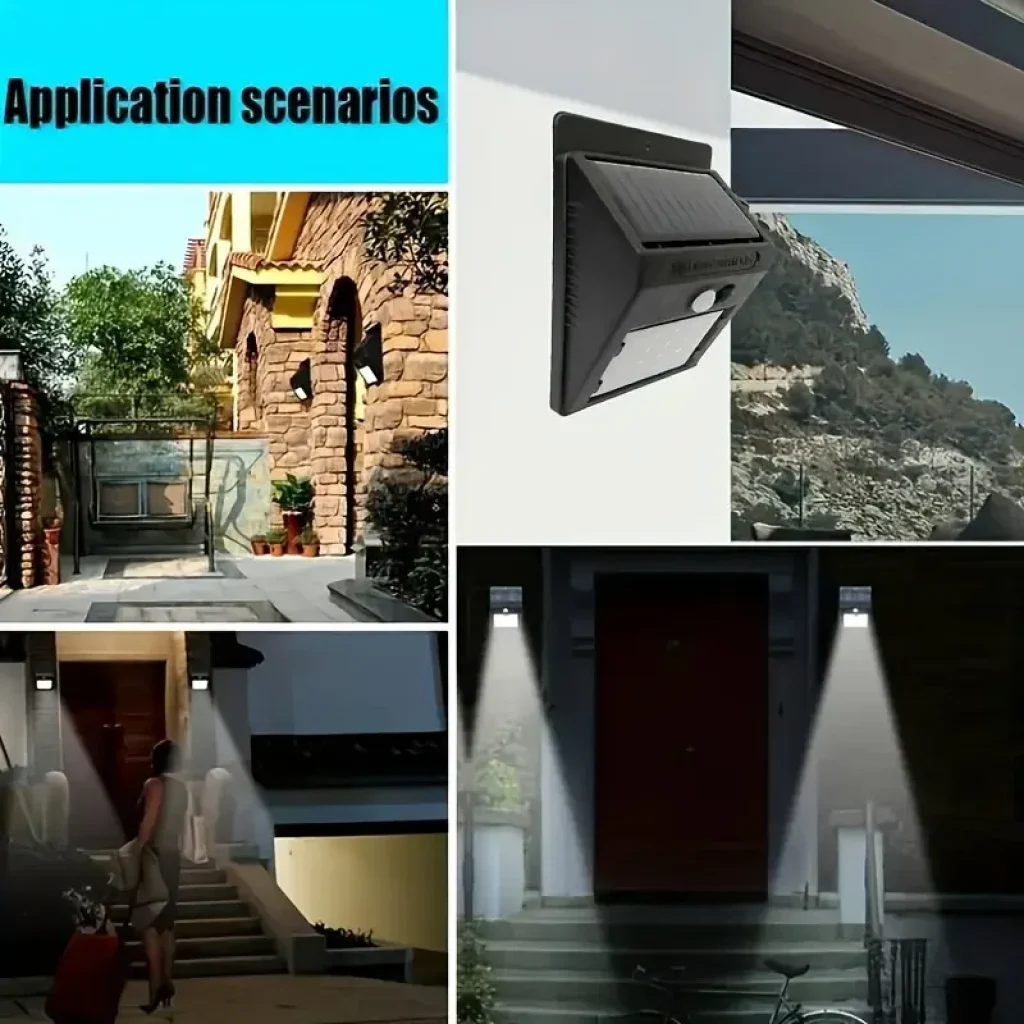 20 LED Güneş Enerjili Güvenlik Işıkları, Dış Mekan Bahçe Garaj Araç Yolu Teras Deck için 120° Geniş Açıya Sahip Hareket Sensörlü Duvar Işıkları