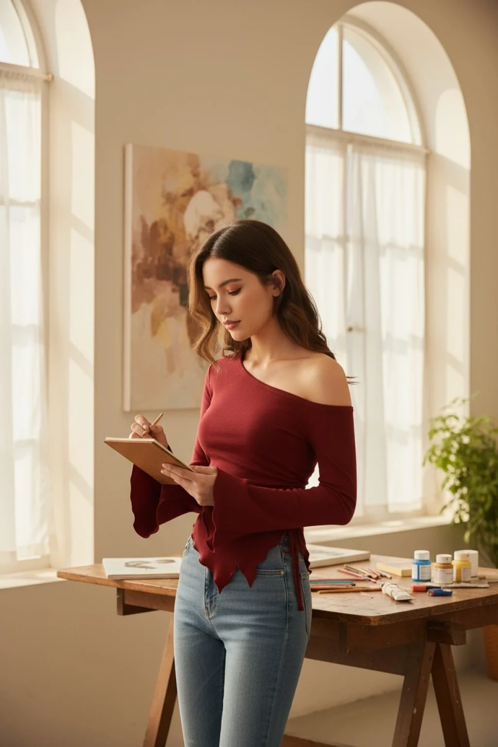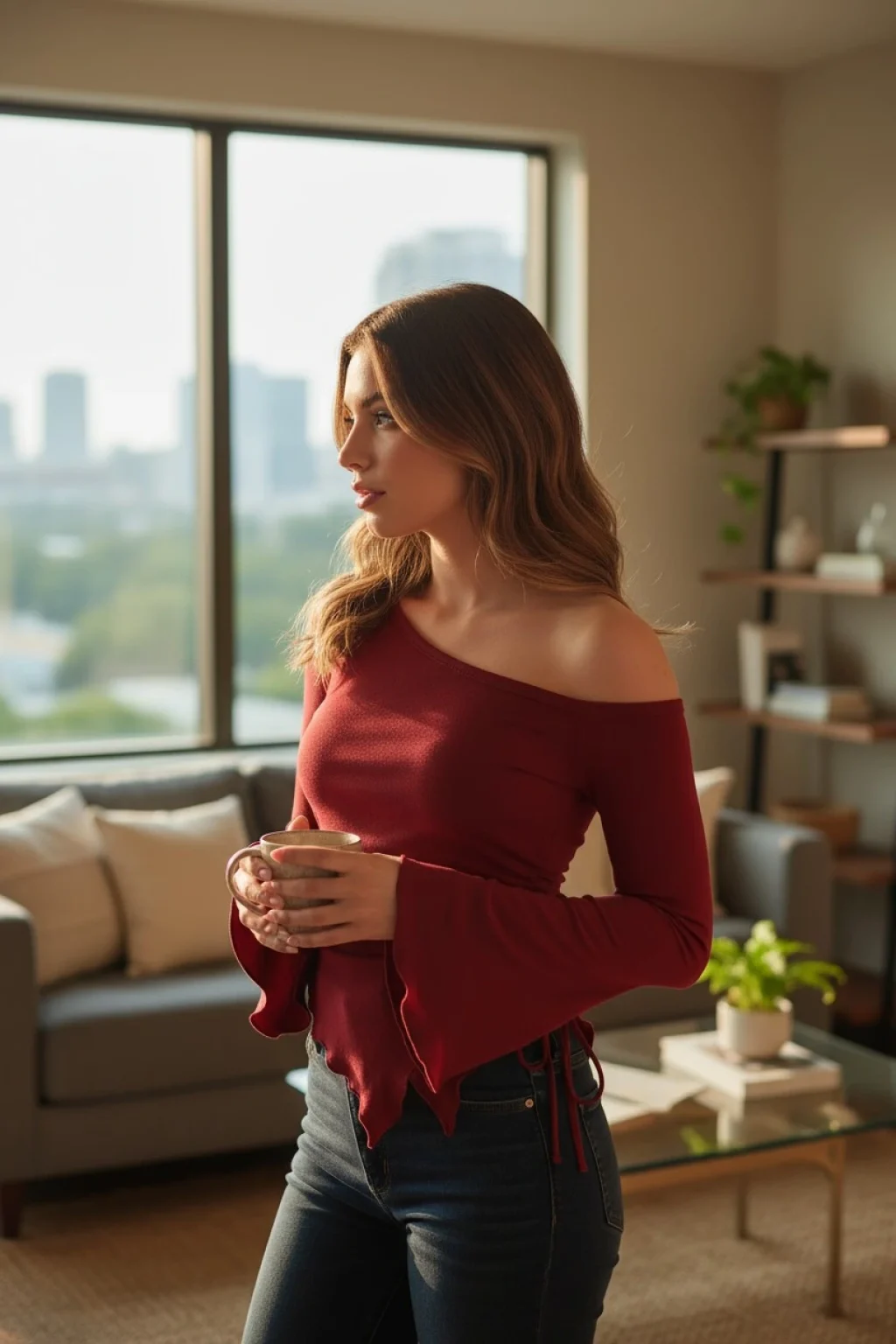• Bu bordo bluzu açık tonlu jean ve bej topuklu botlarla kombinleyerek sıcak ama sofistike bir görünüm yakalayabilirsiniz.