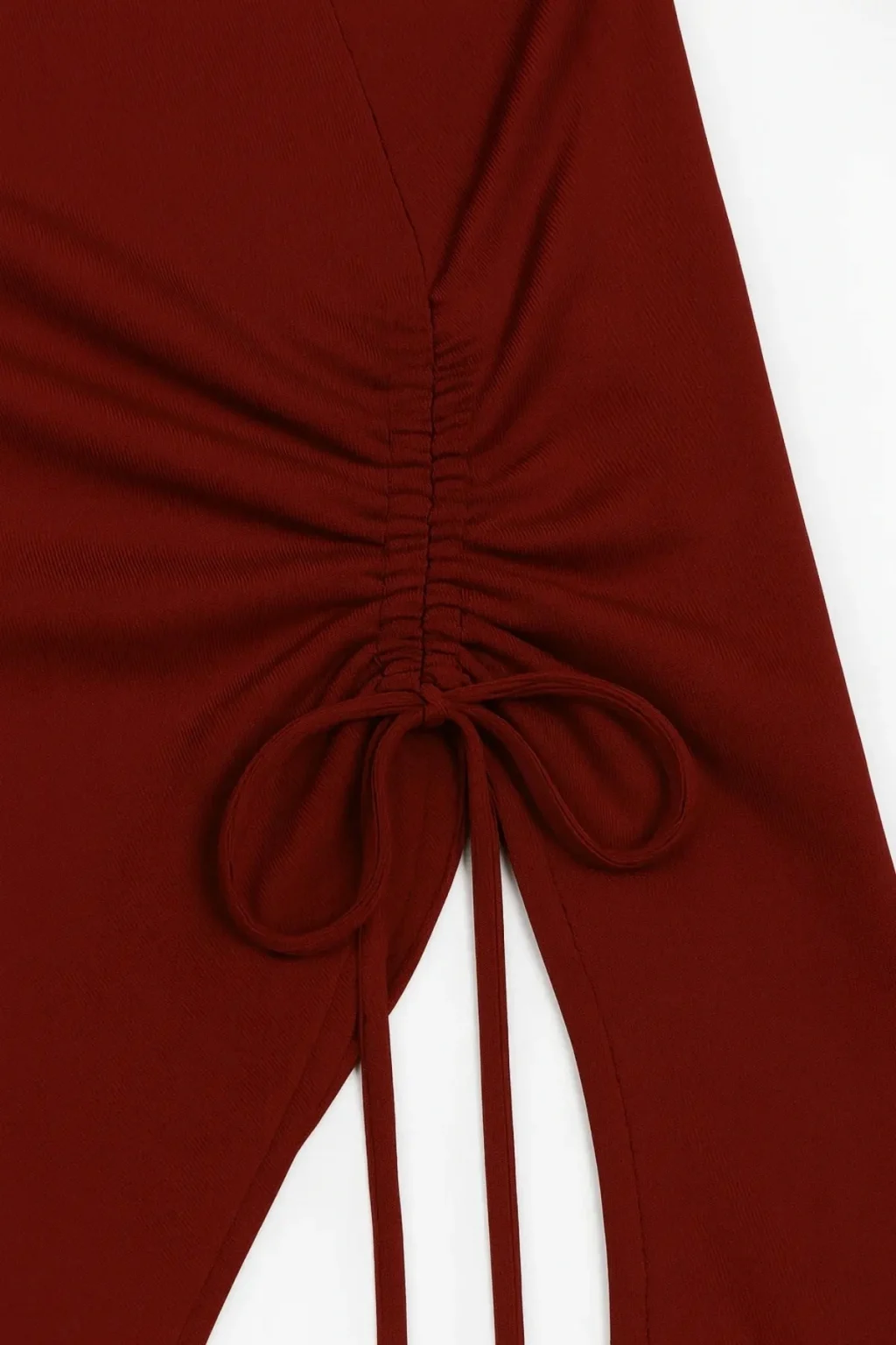• Bordo rengin sıcaklığı ve asimetrik kesimin modern dokunuşu ile stilinizi bir adım öne taşıyın.