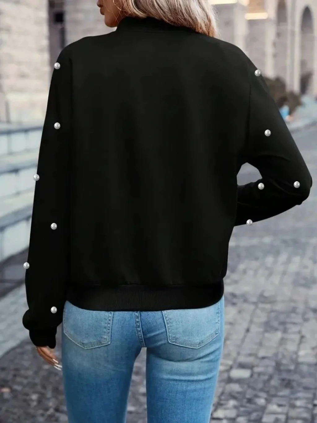 Kadın Uzun Kollu önden Fermuarlı Incili Kısa Modal Ceket