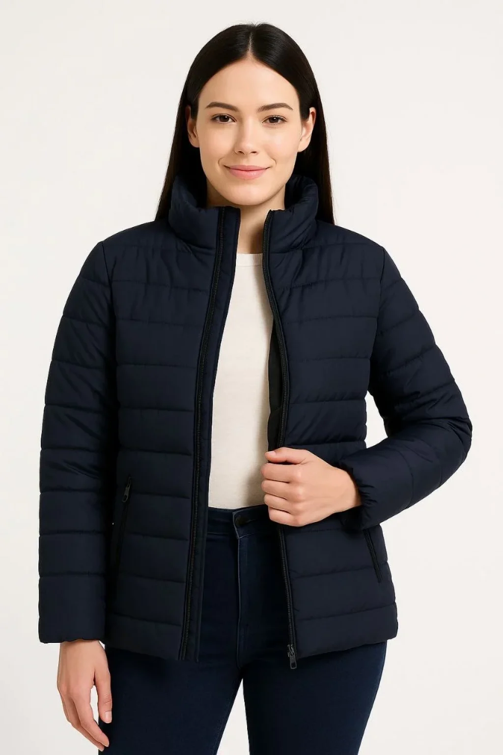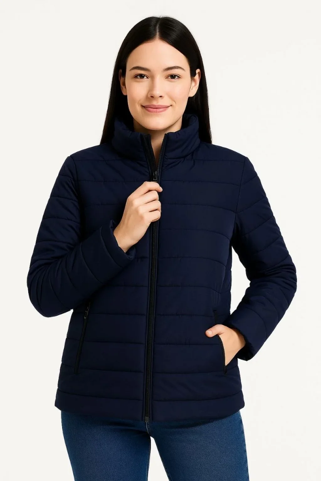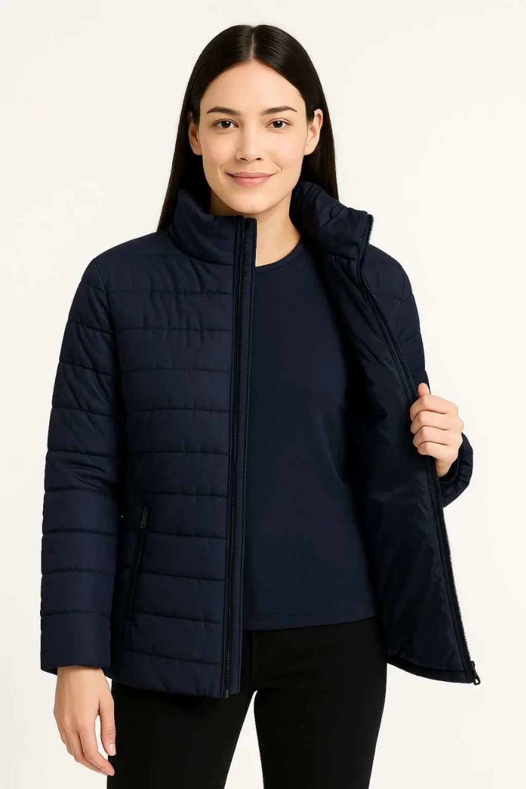 • Kadın Bomber Mont Ceket – Su İtici Kumaş, Kapitone Astarlı, Fermuarlı, Kışlık - Lacivert