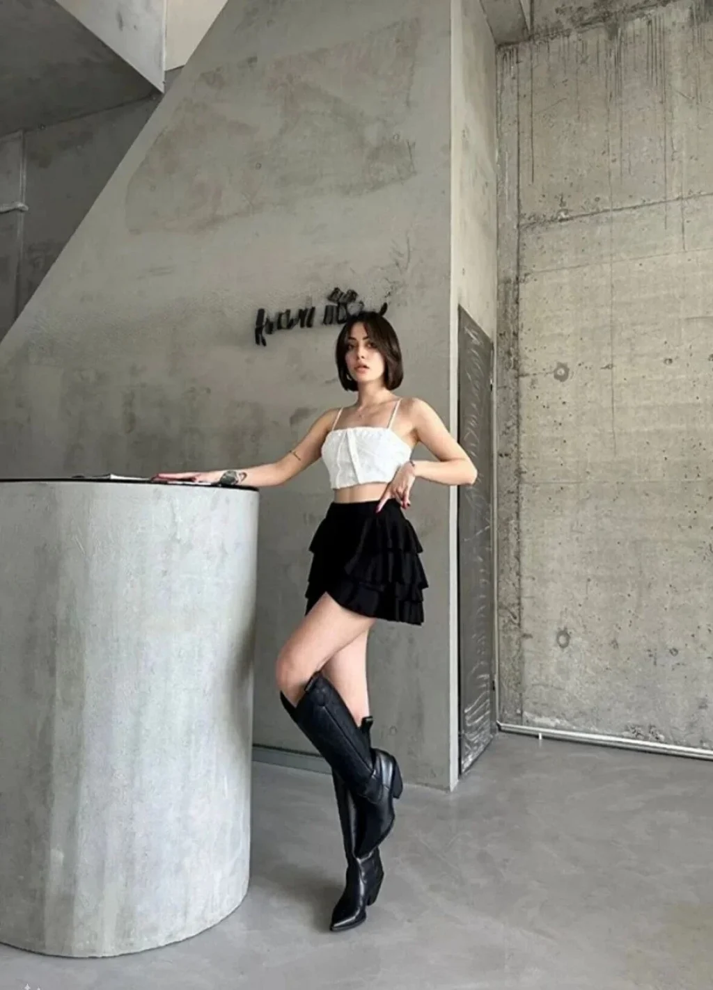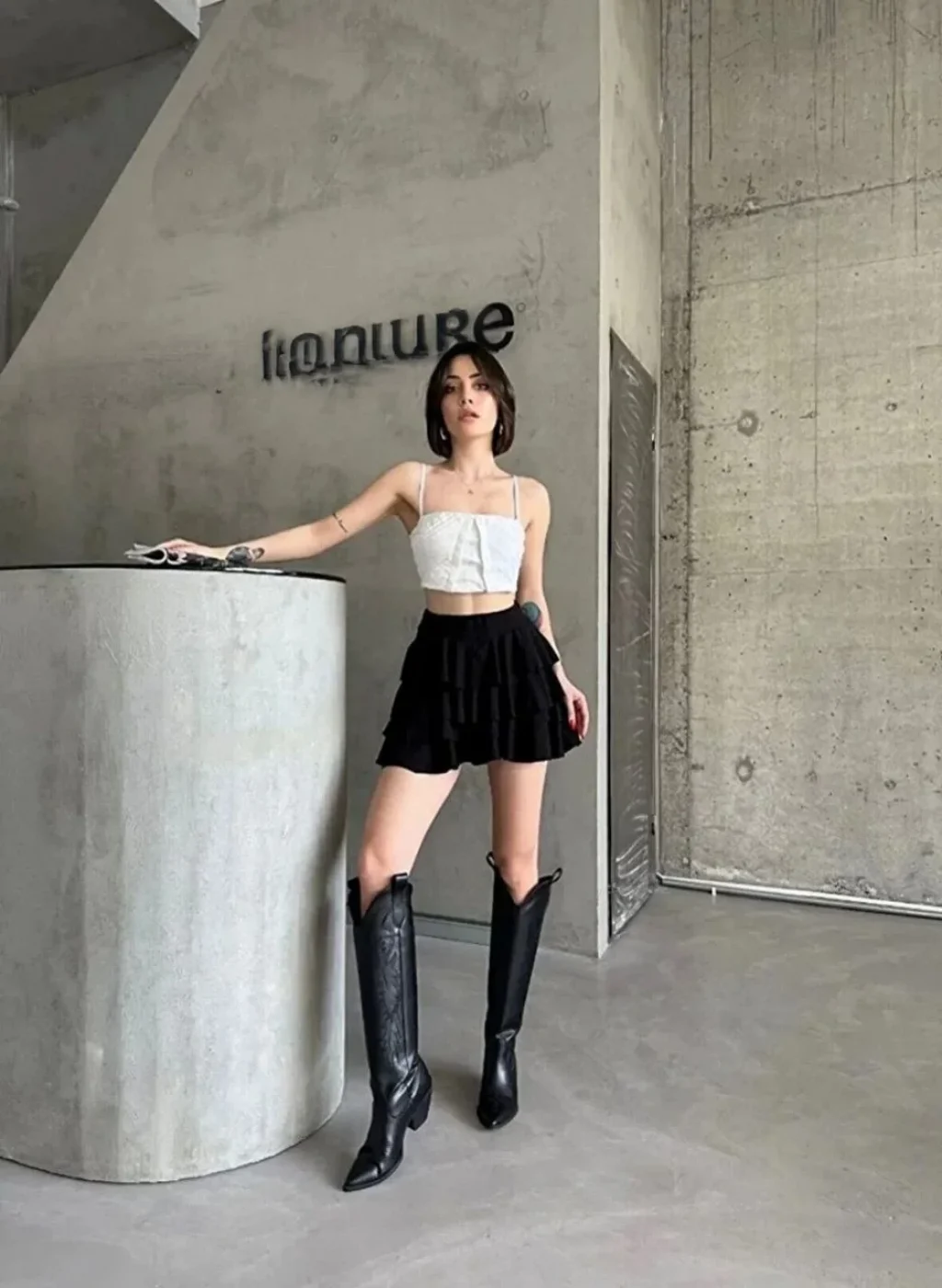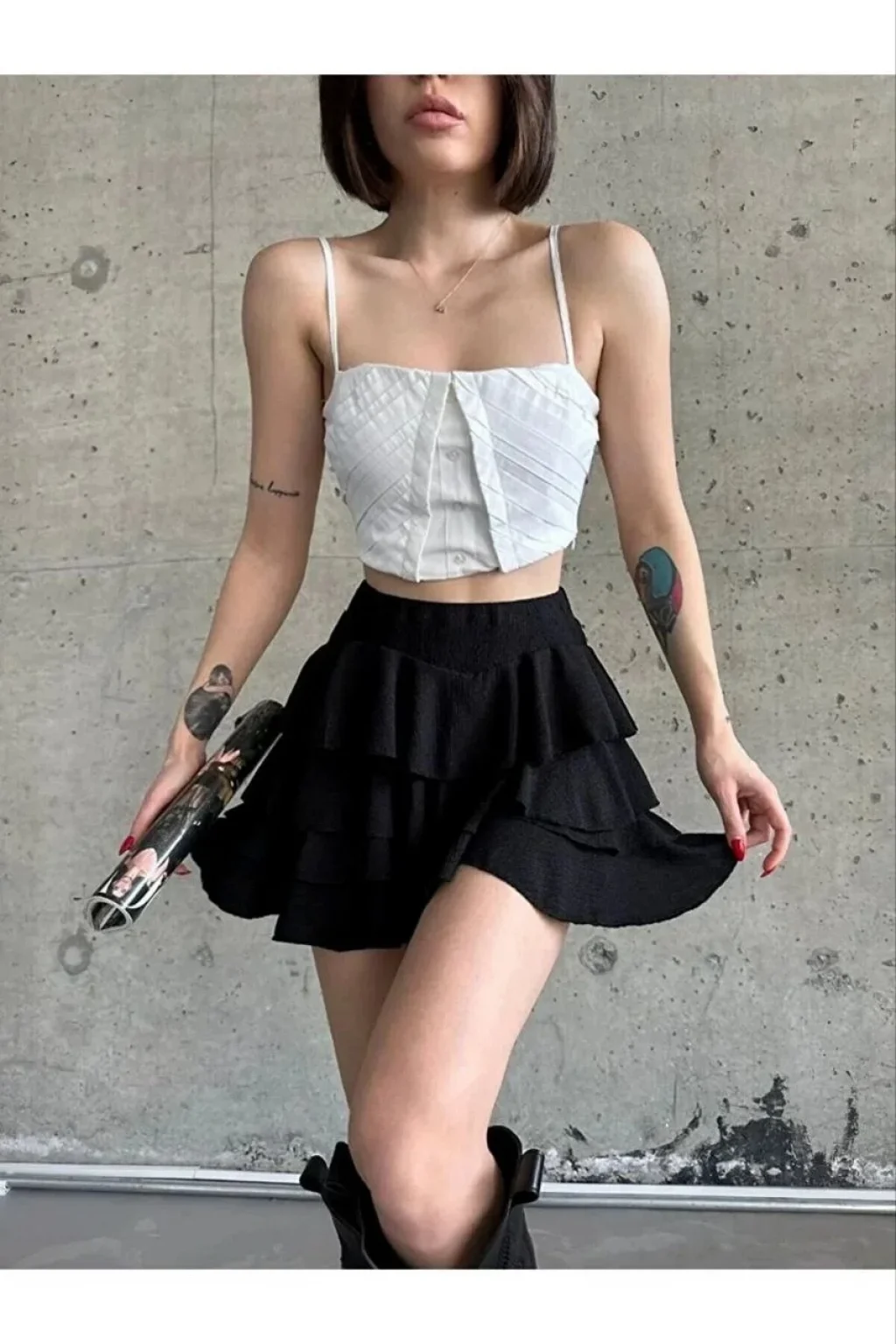 Luz&Pos Kadın Siyah Katlı Mini Fırfıtlı Etek Lastikli Yüksel Bel, Volanlı Tasarım, Rahat Kalıp, Günlük Ve Şık Kombinelere Uygun Yazlık Etek - Siyah