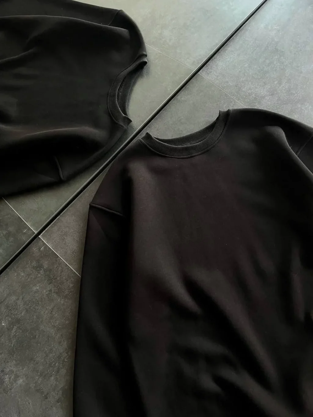 • Kışlık Bisiklet Yaka Üç İplik Basic Sweatshirt - Siyah