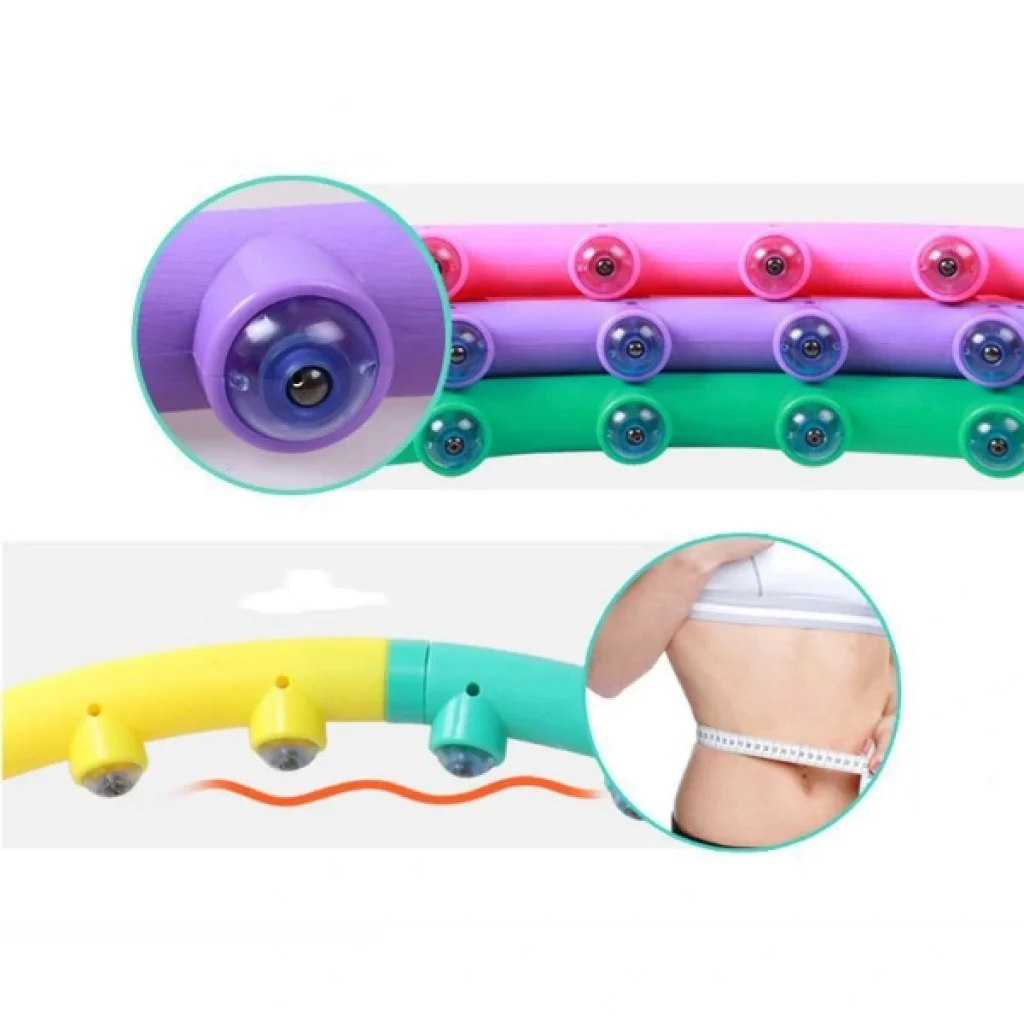 MASAJ BİLYELİ HULAHOPÜrün ÖzellikleriMasaj bilyeli hulahop, formda kalmak ve vücut şekillendirmek isteyenler için mükemmel bir egzersiz aracıdır. Düzenli kullanımda bel ve karın bölgesindeki yağların yakılmasına yardımcı olur, kasları sıkılaştırarak fit bir görünüm kazandırır. İç kısmında yer alan masaj bilyeleri, egzersiz sırasında kan dolaşımını hızlandırır ve vücuda masaj etkisi yaparak rahatlama sağlar. Renkli ve modüler tasarımı sayesinde kolayca takılıp sökülebilir, taşıması ve saklaması pratiktir. Dansla birleştirilen hulahop egzersizleri hem eğlenceli hem de yüksek kalori yakımı sağlar. Saatte 700 kaloriye kadar enerji harcatabilir. Günde 1-2 kez, 20 dakikayı geçmeyecek şekilde düzenli kullanım önerilir. Sağlam plastik yapısı uzun ömürlü kullanım sunarken 98 cm çapıyla hem başlangıç hem ileri seviye kullanıcılar için uygundur.Paket İçeriği1 adet Masaj Bilyeli Hulahop