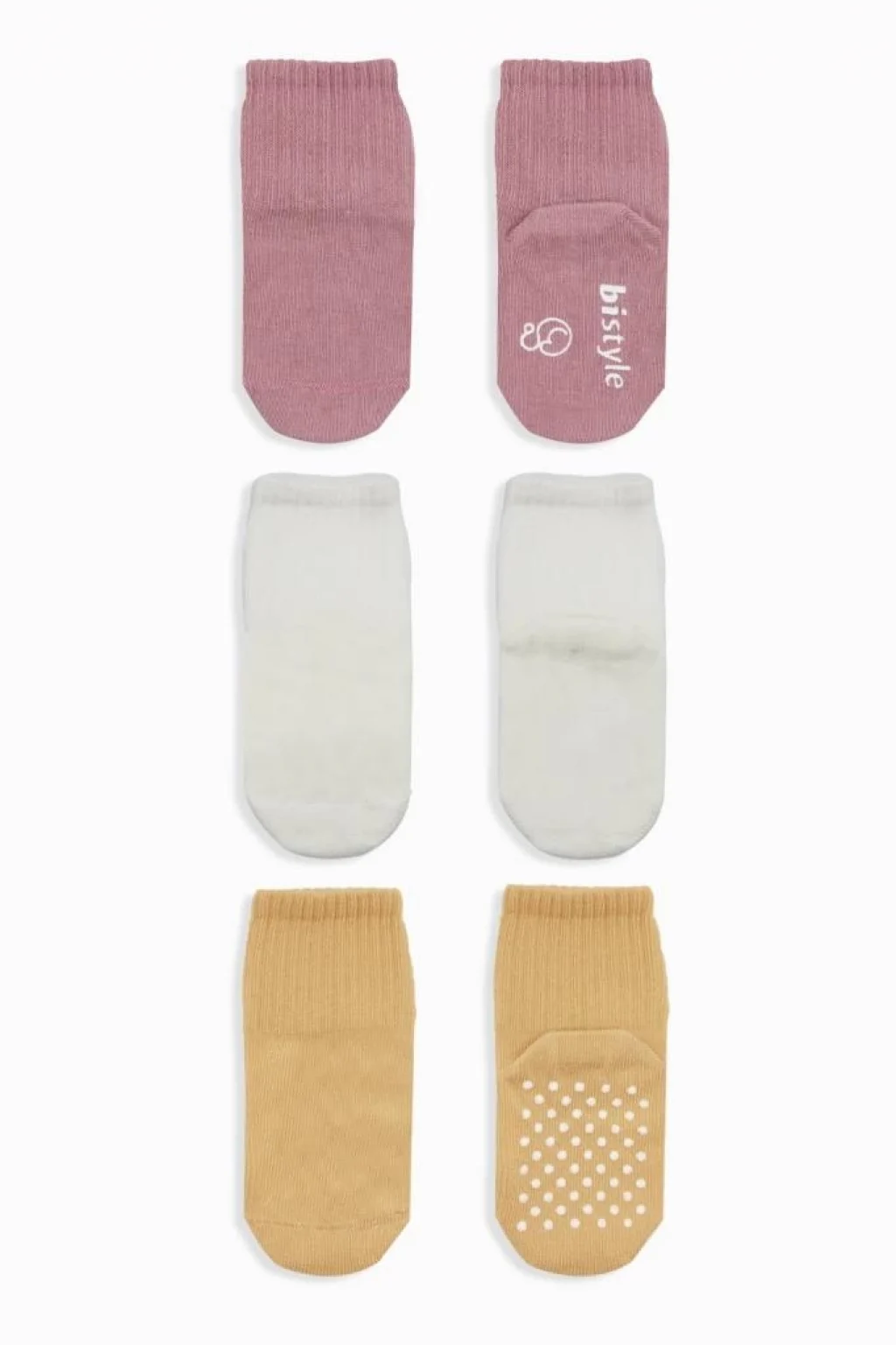 Nessiworld Bistyle Basic Kaymaz Penye Soket Çorap 3'Lü BS10107 Pudra Ekru Somon