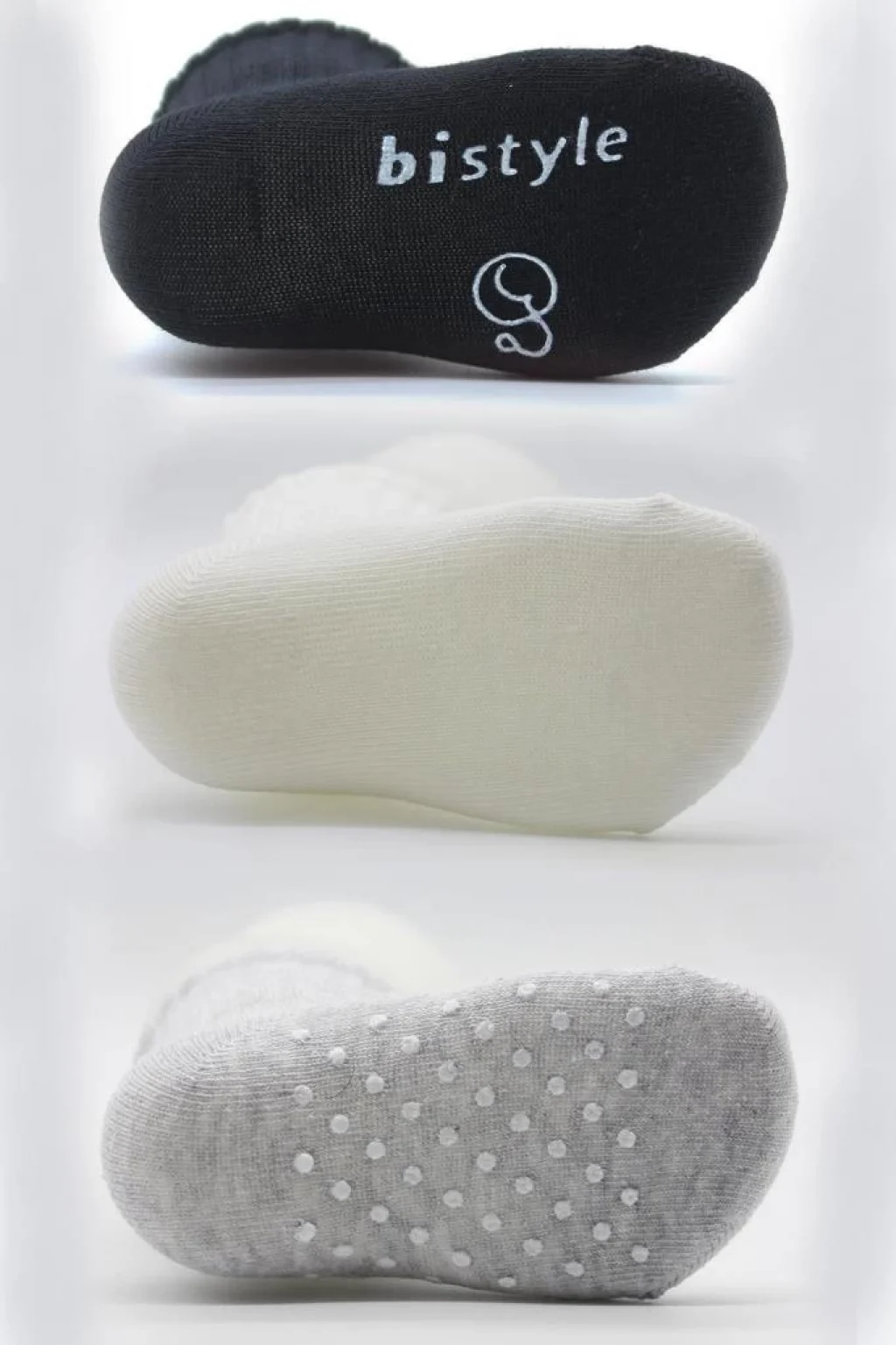 • Nessiworld Bistyle Basic Kaymaz Penye Soket Çorap 3'Lü BS10107 Siyah Ekru Gri