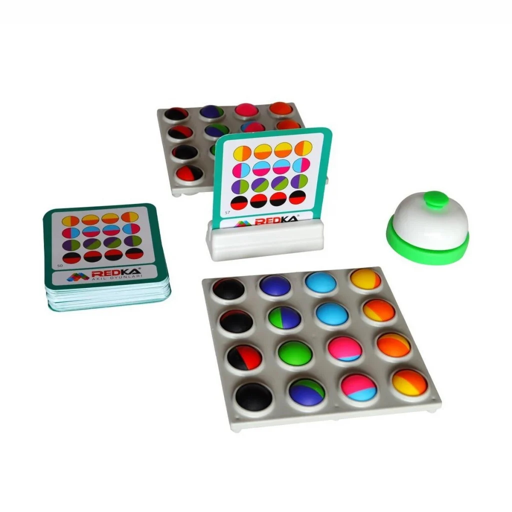 Şekli ilk oluşturan oyuncu zile basar, dizilimi doğru ise kartı kazanır.