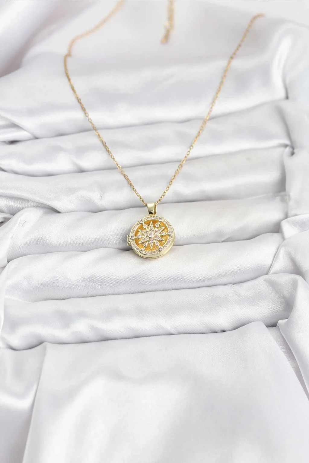 316L Çelik Zincir Gold Renk Kutup Yıldızı Kapaklı Model Kadın Kolye