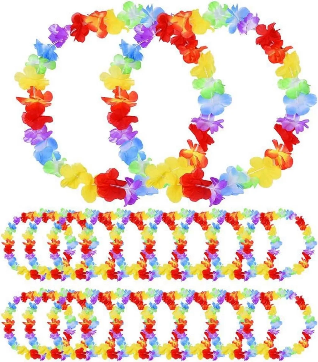 Hawaii Çiçekli Boyun Kolyesi - Renkli Tropikal Parti Leisi 12 Adet