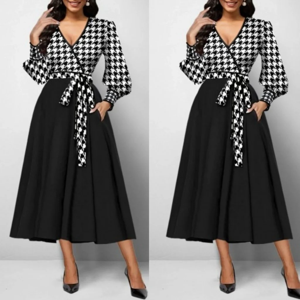 Kadın Uzun Kollu Kruvaze Yaka Dalgıç Krep Midi Boy Elbise