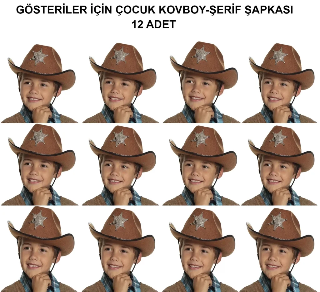 Kovboy Şerif Şapkası Kahve 12 Adet - Kostüm, Parti Ve Gösteri Şapkası