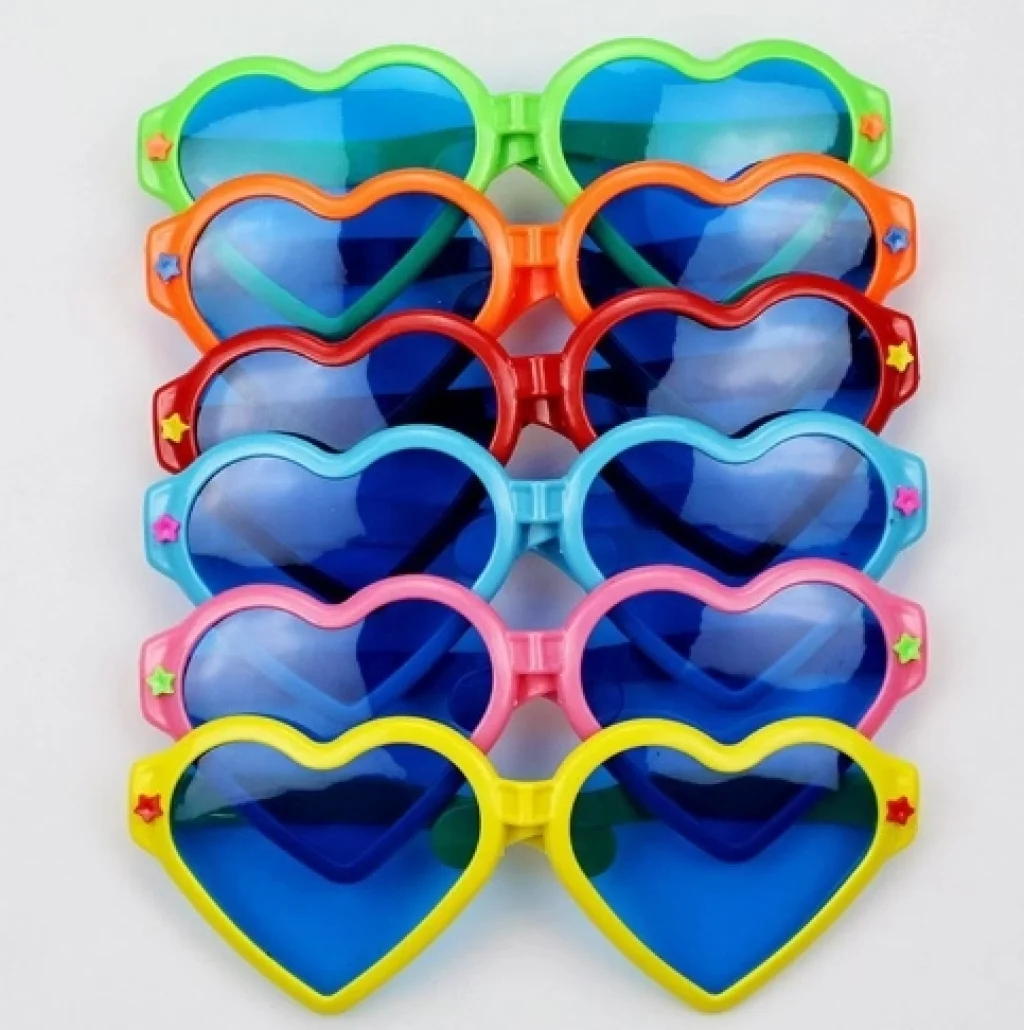 Mega Boy Büyük Kalp Şekilli Parti Gözlüğü 12 Adet Rengarenk