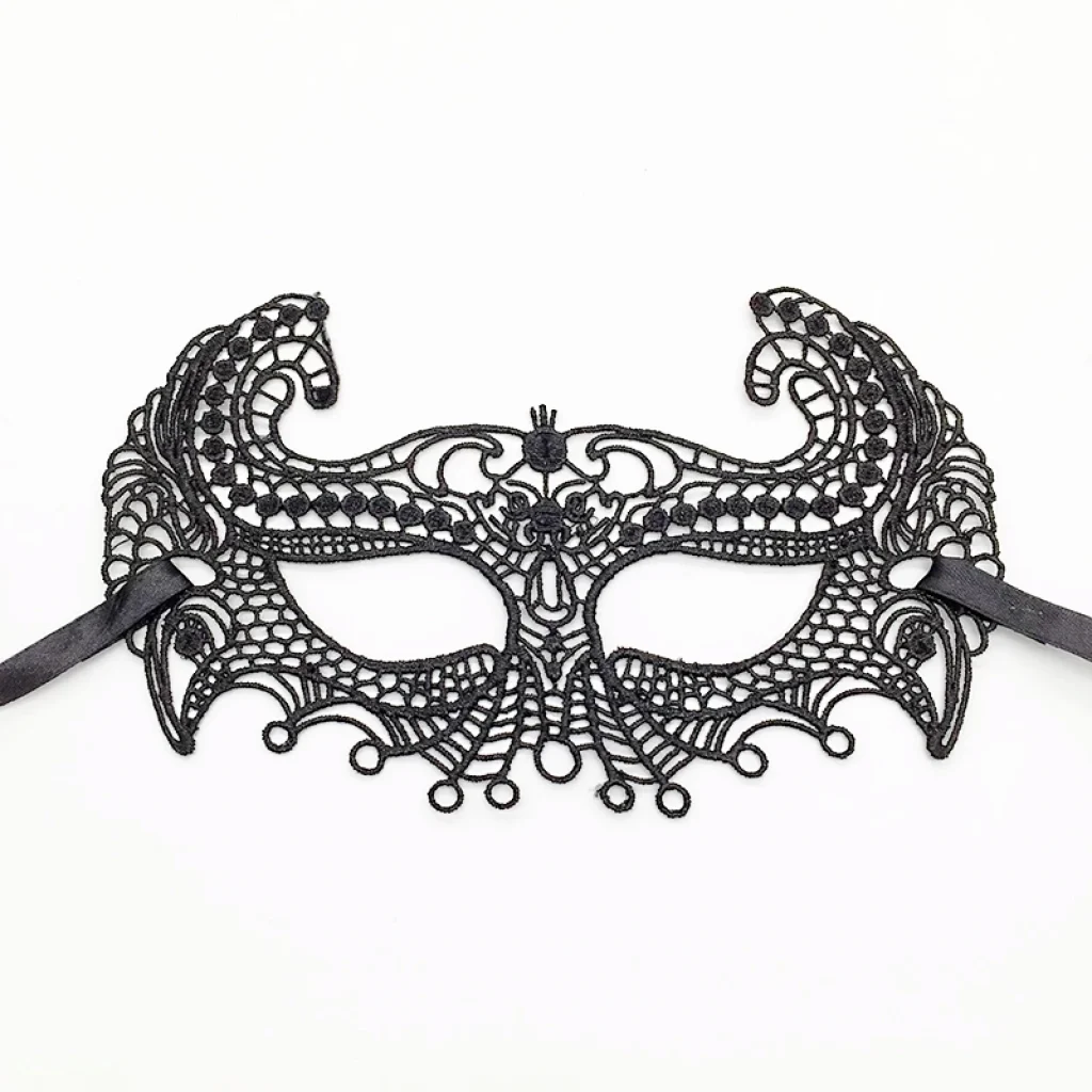 Siyah Renk Kulaklı Dantel Parti Balo Maskesi