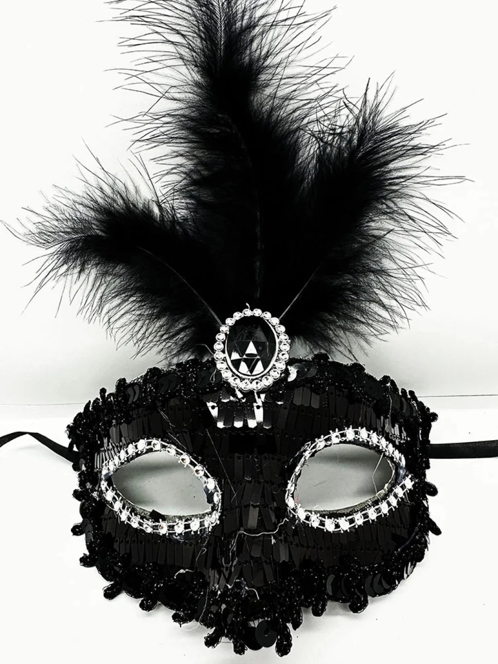 Siyah Renk Payetli Pullu Tüylü Parti Maskesi 17x20 Cm