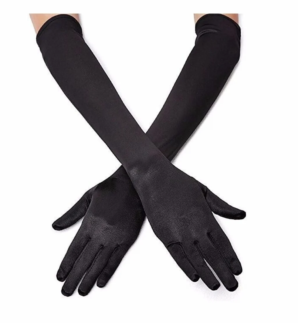 • Siyah Renk Likralı Dirseğe Kadar Uzun Kumaş Eldiven 40 cm