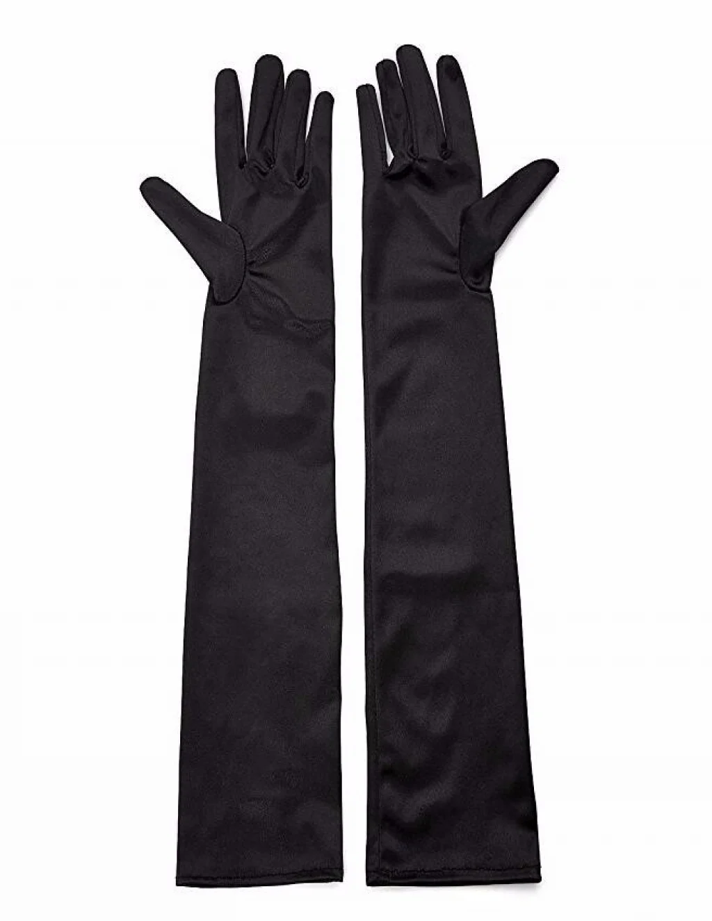 Siyah Renk Likralı Dirseğe Kadar Uzun Kumaş Eldiven 40 cm