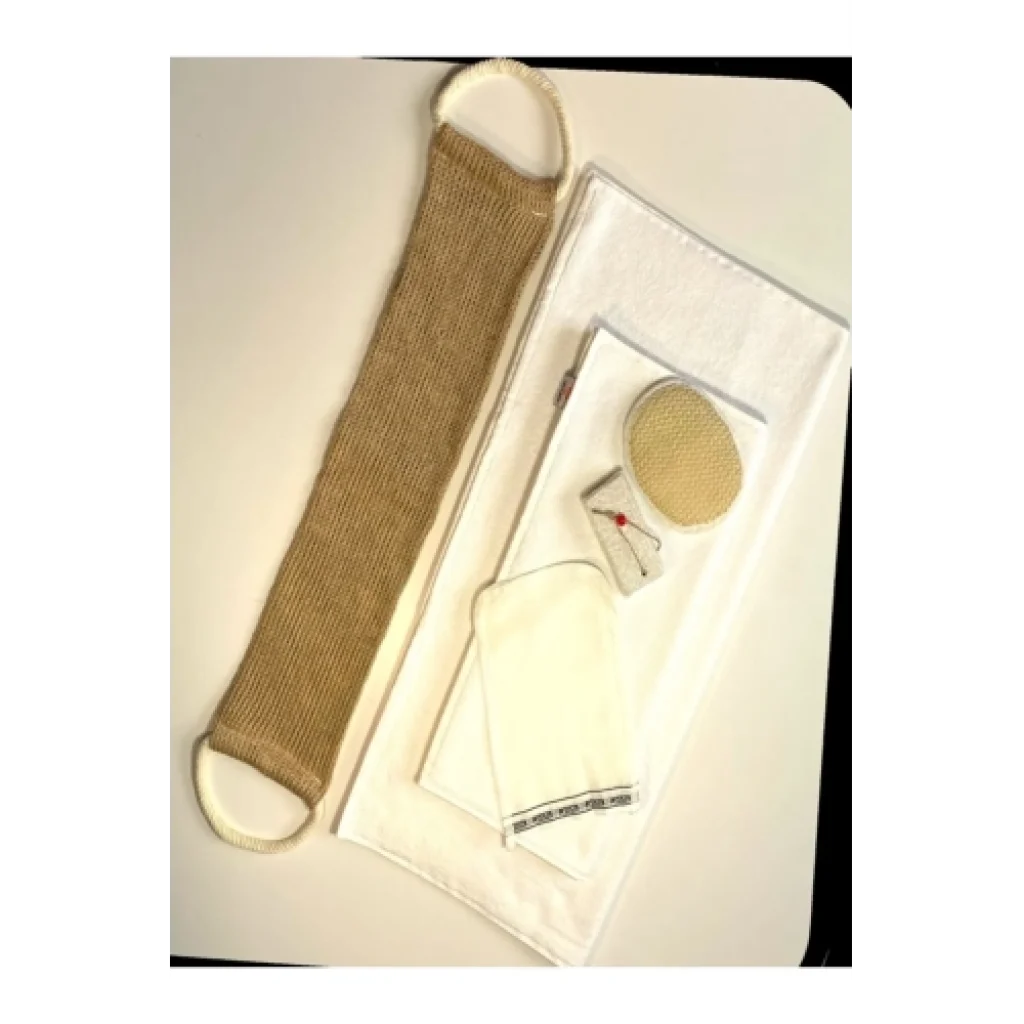 Kendinizi ve sevdiklerinizi şımartın! %100 Keten 6'lı Banyo Hamam Seti ile her duşunuzu lüks bir spa deneyimine dönüştürün. Tamamen doğal ve 1. sınıf malzemelerden üretilen bu set, cildinize en hassas bakımı sunar ve her kullanımda yenilenmiş hissetmenizi sağlar.Setin içeriğindeki keten sırt lifi ve yüz lifi ile cildinizdeki ölü hücreleri temizleyerek pürüzsüz bir görünüm kazanın. Geleneksel hamam keyfini yaşatan kese, cildinizin nefes almasına yardımcı olurken, ponza taşı topuklarınızdaki sertleşmeleri gidererek ayaklarınızı yumuşatır. Yüksek emici baş ve vücut havlusu ise cildinize nazikçe temas ederek banyo ritüelinizi tamamlar.Ürün ÖzellikleriSırt Lifi: %100 keten malzemeden üretilmiştir, cildi ölü hücrelerden arındırır.Yüz Lifi: Gözenekleri temizleyerek siyah nokta ve akne oluşumunu önlemeye yardımcı olur.Kese: Cildin nefes almasını sağlar, hamam keyfini evinize taşır.Ponza Taşı: Topuklardaki nasır ve ölü derileri temizleyerek ayakları yumuşatır.Baş ve Vücut Havlusu: 1. sınıf malzemeden üretilmiştir, yüksek emicilik ve yumuşaklık sunar.Doğallık: Tüm ürünler %100 doğal malzemelerden yapılmıştır.