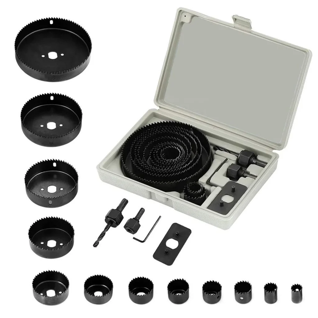 <p>-Yassı metal, bronz, bakır, alüminyum, ahşap, plastik ve MDF gibi malzemelerde delik açmak için kullanılır.</p><p>-Yüksek Performans</p><p>-Kaliteli Uçlar</p><p>-Uzun Ömürlü Kullanım</p><p>-16 Parça</p><p>Boyutlar:</p><p>- 19-22-28 mm</p><p>- 32- 38-44 mm</p><p>-51-64-76 mm</p><p>-89-102-127 mm</p><p>12-127 mm Adaptör</p><p>Panç Koruma Plakası</p><p>-Alyan Anahtar</p>