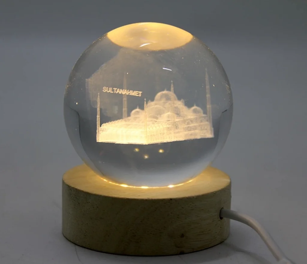 3D Kristal Cam Küre Ahşap Soketli İstanbul Temalı Led Lamba Aalk2574 Ürün Ölçüleri 7,5 Cm