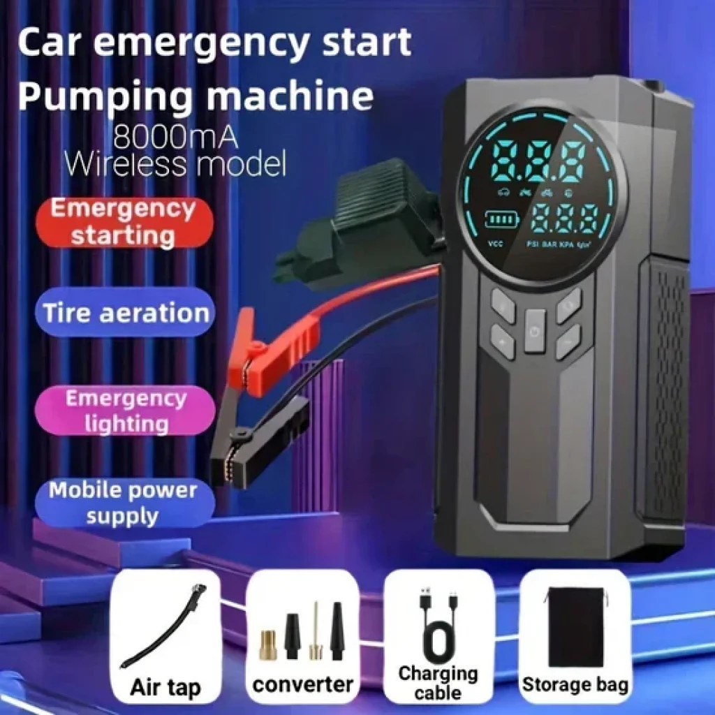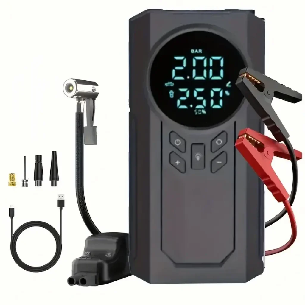 4’ü 1 Arada Araba Akü Takviyesi, Hava Pompası, Powebank, LED Işık Aydınlatma Özellikli Taşınabilir Çok Fonsiyonlu Hava Kompresörü.