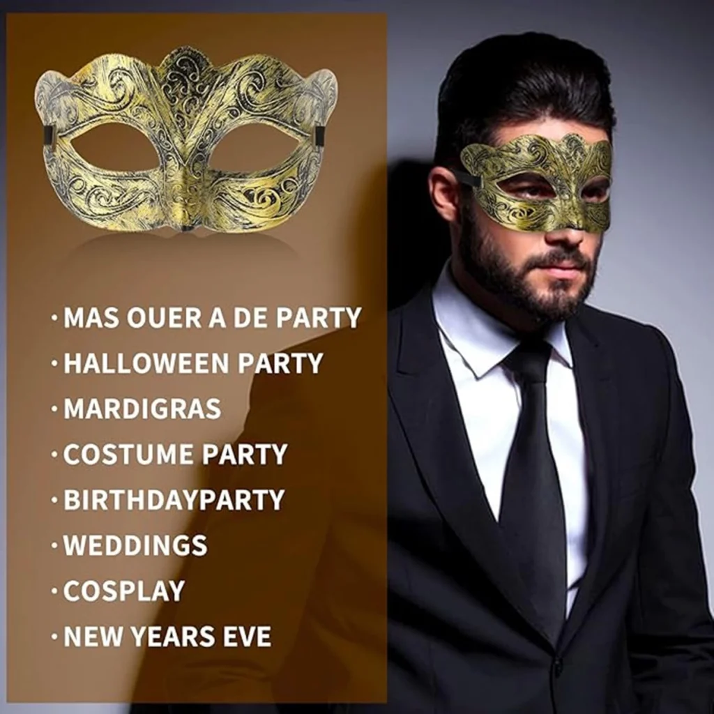Altın Renk Eskitme Maskeli Balo Maskesi – Venedik Tarzı Parti Maskesi