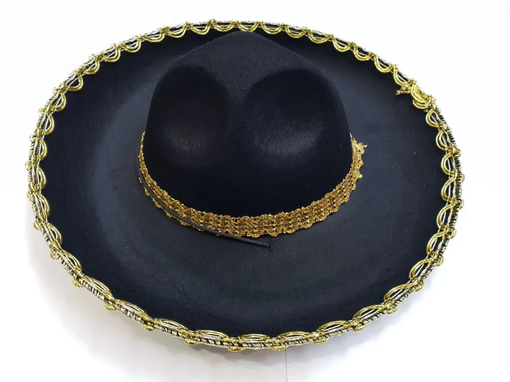 Altın Renk Şeritli Meksika Mariachi Latin Şapkası 55 Cm Çocuk