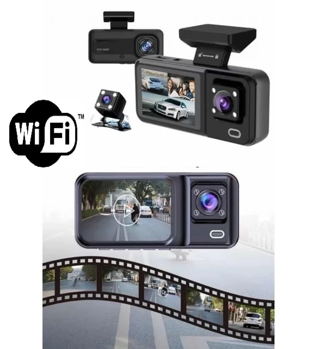 Araç Kamerası - 3 Kameralı Wifi Ön , İç Ve Arka Full Hd Dvr Araç İçi Ekranlı Kamera