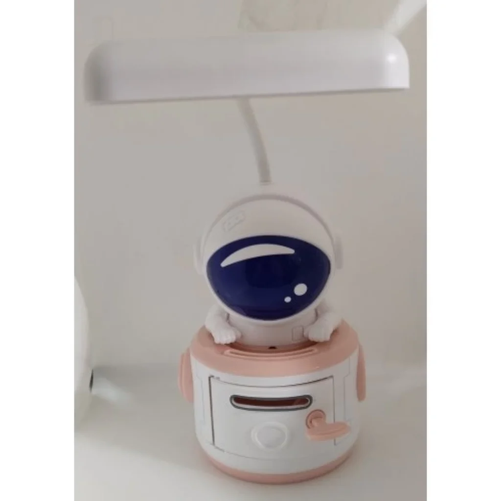 Masa lambası ürünümüzün eni 8santimetredir. Astronotun boyu 12 cm olup ürünün tamamının boyu 25 santimetredir. Ürünümüzde kumbara özelliği bulunmaktadır. Ön kısım anahtarlıkla açılıp kapanabilmektedir.Masa Lambası kısmı şarjlıdır. Type-C kablo ile şarj olmaktadır.Kutu içerisinde 1 adet Type-C şarj kablosu bulunmaktadır.Ürün ışığının 3 derecesi bulunmaktadır. Arkadaki düğmeye basılarak ayarlanır.