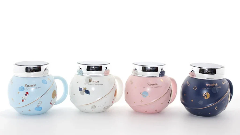 Ayna Kapaklı Astronot Tasarımlı Porselen Kupa Bardak