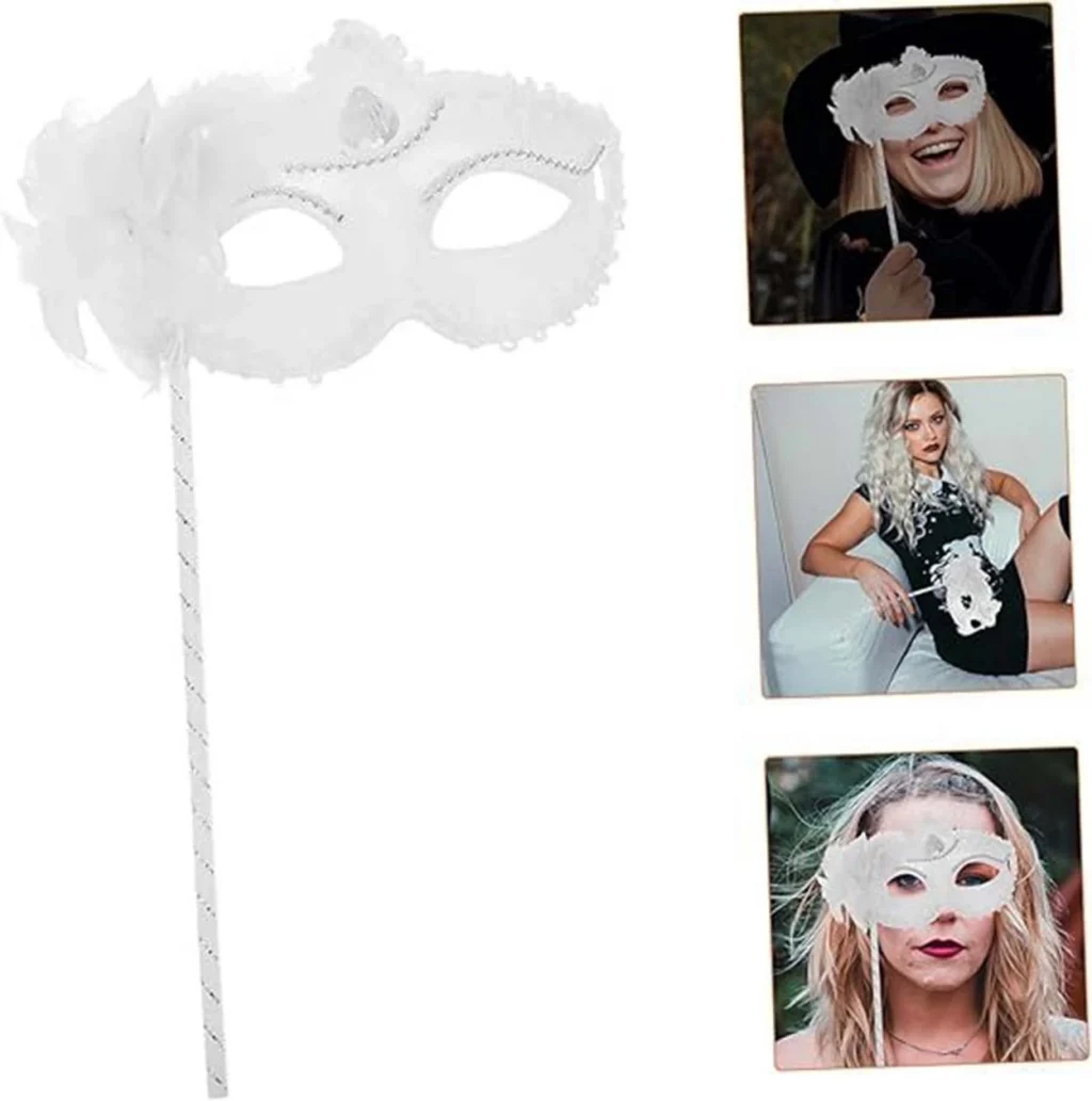 Beyaz Işıltılı Tutmalı Fotoğraf Çekimi Maskesi 18x29 Cm