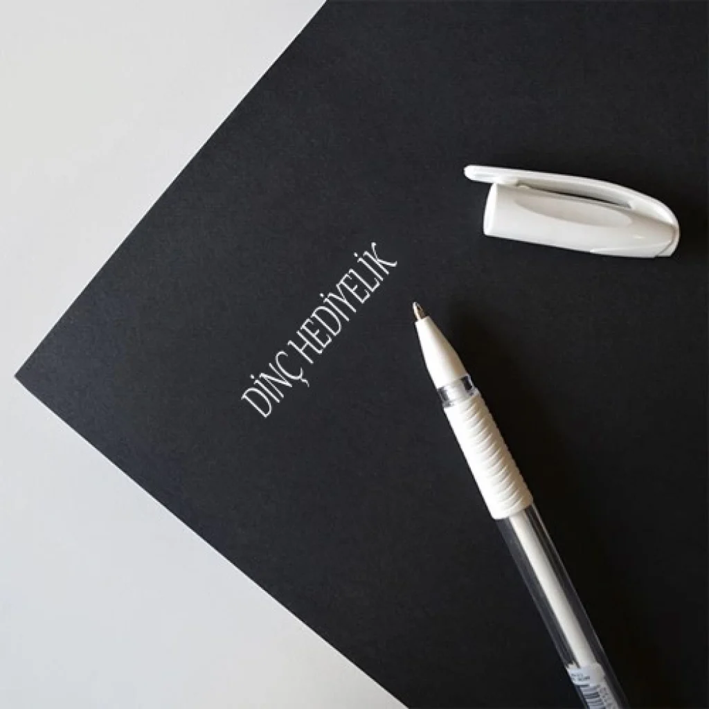 BEYAZ JEL KALEMÜrün ÖzellikleriBeyaz jel kalem, siyah yapraklı defterlerde ya da notluklarda yazı yazabilmeniz için özel olarak tasarlanmıştır. Akışkan mürekkep sayesinde mükemmel ve yumuşak bir yazım sağlar. Konforlu ve ergonomik bir tutuş sunan yuvarlak tasarımı ile rahatlıkla kullanılabilir. 1 mm elmas uçlu olan bu kalem, yazarken güvenli kapaklı bir tasarıma sahiptir. Siyah (kara) defterlerde beyaz yazı yazma deneyimi sunar.Paket İçeriği1 Adet Beyaz Jel Kalem