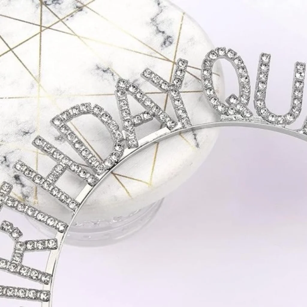 BİRTHDAY QUEEN YAZILI KRALİÇE TAÇÜrün ÖzellikleriGöz alıcı tasarım: Parlak gümüş kaplama ve ışıl ışıl kristal taşlarla süslü bu taç, doğum gününüzde tüm bakışları üzerinize çekecek.Kraliçelere layık ışıltı: "Birthday Queen" yazısı, kraliçenin tahtında olduğunuzu tüm dünyaya ilan edecek.Kusursuz uyum: 16x17 cm boyutuyla zarif ve göz alıcı bir görünüme sahip. Hafif ve ergonomik tasarımı sayesinde uzun süre rahatça kullanabilirsiniz.Rahat ve güvenli: Esnek taç sistemi ile kafanıza tam oturur ve rahatlık sunar.Unutulmaz bir anı: Doğum gününüzün en güzel anılarını ölümsüzleştirmek için mükemmel bir aksesuar.Kendinizi özel ve güzel hissedin.Doğum gününüzde unutulmaz ve göz alıcı bir görünüm elde edin.Kendinize güveni ve özgüveni artırın.Tüm dikkatleri üzerinize çekin.Doğum gününüzü daha da eğlenceli ve özel hale getirin.Taç, esnek sistem sayesinde kafanıza kolayca takabilir ve rahatlıkla kullanabilirsiniz.Harf Yüksekliği : 2.5 cmPaket İçeriği1 adet kraliçe taç