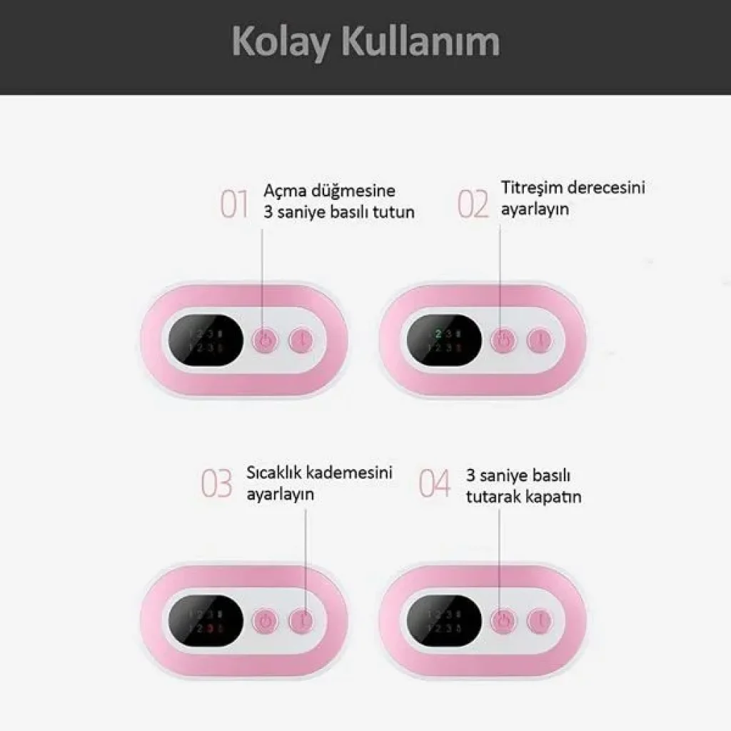 DİJİTAL ÖZEL GÜN KEMERİÜrün ÖzellikleriÖzel gün kemeriyle regl ağrılarınıza son verin.Sıcaklık ayarı ile karnınızı ısıtır ve adet sancısınıtedavi eder.Titreşim masajı özelliği ile regl ağrınızıiyileştirir.Üşütme ve soğuk algınlığı için ısı verme özelliği iyigelir.Bel, sırt ve kas ağrılarınızı masaj yaparak tedavieder.Sindirime yardımcı olur, hazımsızlığa iyi gelir.Doğum sonrası iyileşme sürecinde yardımcı olur.Sıcak su torbasını unutun, dökülme, yakma riskleriolmayan, tamamen güvenli yeni teknoloji.Paket İçeriği1 adet dijital özel gün kemeri