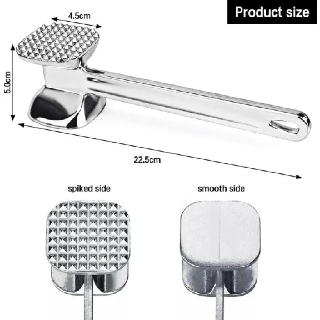 Et Dövme Çekici Çift Taraflı: Mutfakların Vazgeçilmez YardımcısıEt dövme çekici, özellikle sert ve lifli etleri yumuşatmak, marine soslarının ete daha iyi nüfuz etmesini sağlamak ve pişirme sürecini hızlandırmak için kullanılan mutfak araçlarından biridir. Çift taraflı olması, farklı kalınlıklardaki etler için farklı yoğunlukta dövme işlemi yapma imkanı sunar.Çift Taraflı Et Dövme Çekicinin Avantajları:Etleri Yumuşatır: Sert ve lifli etleri daha kolay çiğnenebilir hale getirir.Marinasyon Sürecini Hızlandırır: Etin içine daha derinlemesine nüfuz etmesini sağlar.Pişirme Süresini Kısaltır: Dövme işlemi, etin daha hızlı pişmesini sağlar.Eşit Pişirme: Etin her tarafının eşit kalınlıkta olması, daha homojen bir pişirme sağlar.Pratik Kullanım: Farklı kalınlıklardaki etler için farklı tarafları kullanabilirsiniz.Çift Taraflı Et Dövme Çekicinin Özellikleri:Malzeme: Genellikle paslanmaz çelik veya alüminyumdan üretilir.Tasarım: Bir tarafı daha sivri ve ince, diğer tarafı daha geniş ve düz olmak üzere çift taraflıdır.Sap: Kullanımı kolaylaştırmak için genellikle ahşap veya plastik saplıdır.Et Dövme Çekicinin Kullanımı:Et Hazırlığı: Dövmek istediğiniz eti temiz bir yüzey üzerine yerleştirin.Dövme İşlemi: Daha kalın kısımlar için geniş ve düz tarafı, daha ince kısımlar için ise sivri tarafı kullanın. Etin her yerine eşit şekilde vurmaya özen gösterin.Marine İşlemi: Dövme işlemi sonrasında eti marine ederek lezzetini artırabilirsiniz.Nerelerde Kullanılır?Ev Mutfağı: Biftek, şnitzel, tavuk gibi etleri hazırlamak için idealdir.Restoranlar: Profesyonel mutfaklarda büyük miktarda et hazırlamak için kullanılır.Kasaplar: Etleri parçalara ayırırken ve yumuşatırken kullanılır.
