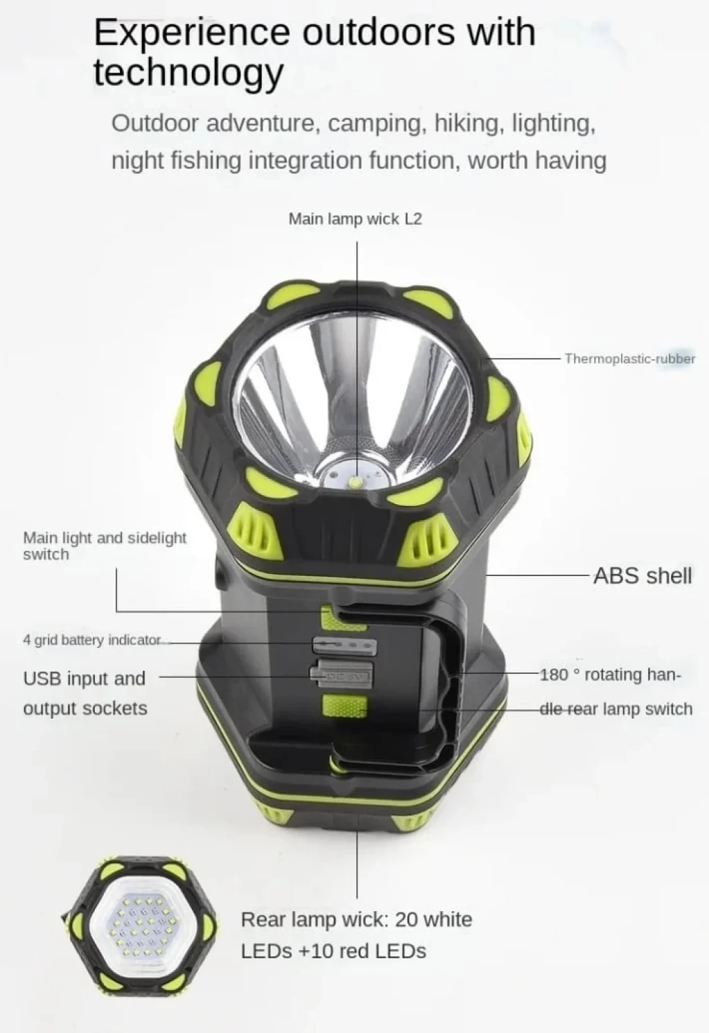 F-262 Yeni Güçlü Çift Taraflı Taşınabilir Spot Ve Işıldak Usb Powerbank Şarjlı Fener